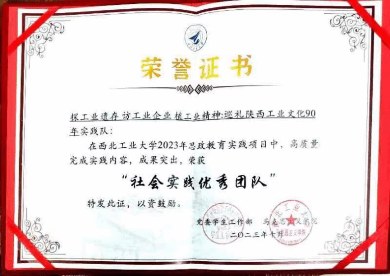 1.开展一系列红色工业文化社会实践活动,培植学生的工业精神,加强城市记忆。在学校党委学生工作部“学思践悟勇担当”活动的推动下,2023年6月,汪永平老师组建“参访工业遗存 赓续红色基因”团队,带领学生先后赴“大华·1935”、西安老钢厂和西安电影厂三个具有代表性的红色工业遗址进行参观调研,体悟城市记忆,赓续红色精神。2023年8月,学院再次组织“探工业遗址 访工业企业 植工业精神——巡礼陕西工业文化90年”实践团队,前往宝鸡长乐塬抗战工业遗址、中国工合纪念地、航天六院旧址、灵官峡铁路博物馆等工业遗址以及西安比亚迪、隆基绿能、航天六院等著名企业开展社会考察。汪永平老师带领学生回眸陕西工业发展90年的峥嵘岁月,领悟陕西工业人在战乱年代的“极限处境”下所体现出的坚强不屈的顽强精神,在面对孤立隔绝与封锁环境所体现出的无私奉献与坚韧持守的高尚境界,以及改革开放后陕西工业人所体现出的创新求索与奋进拼搏的进取意志。学生由此认识到一部陕西工业发展史,就是一首中国人战胜外来侵略、追求国家独立与民族富强、逐梦建立中国式现代化的悲壮史诗。该项目在2023年10月获得西北工业大学学工部颁发的“学思践悟勇担当”暑期社会实践“优秀团队”。