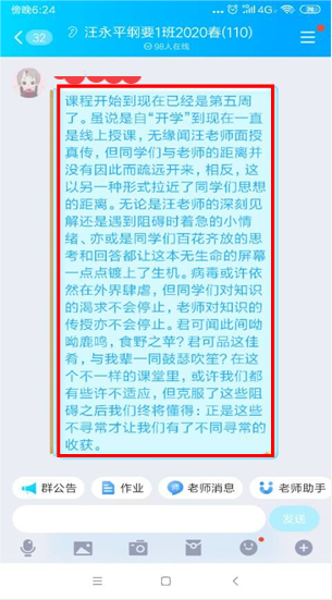 3.以力度感化学生。汪永平老师认为思政课教师既应该拥有思想家的深度,追求内容的深刻与思辨;又应该像工程师,追求“工匠精神”的敬业与专注。她在授课中会注意课堂效果的冲击力,既注重思想的启迪,又注重知识的拓展,追求把引人入胜的内容用混合式教学法呈现出来,展现思想的力量,最终达到价值观塑造的目的。曾有学生言道:“君可闻此间呦呦鹿鸣,食野之苹?君可品这佳肴,与我辈一同鼓瑟吹笙?在这个不一样的课堂里,或许我们都有些许不适应,但克服了这些阻碍之后我们终将懂得,正是这些不寻常才让我们有了不同寻常的收获。”