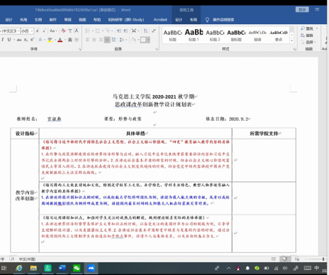 2020年9月11日19:00到21:00,思修与形势政策系全体教师通过腾讯会议,进行了新学期集体备课,通过人人“说课”的形式,来了解各位教师在开课前的准备情况。
