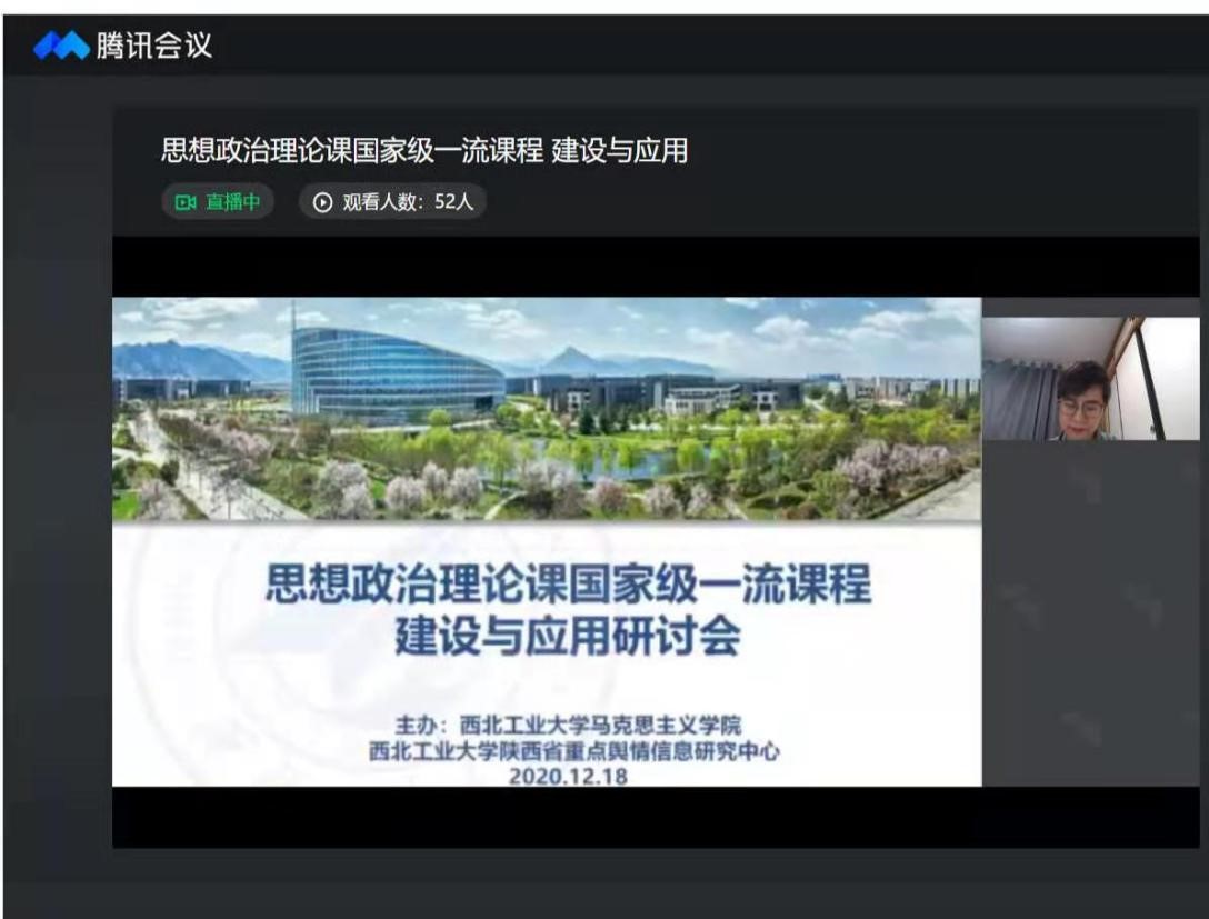 日前,教育部公布了首批国家级一流课程,西北工业大学马克思主义学院(以下简称西工大马院)马克思主义基本原理课获批线下一流课程,带动和示范了全院思政课一流课程建设。为更好开展思想政治理论课国家级一流思政课课程建设,西北工业大学马克思主义学院、西北工业大学陕西省重点舆情信息研究中心全国范围率先举办的思想政治理论课国家级一流课程建设与应用研讨会于2020年12月18日上午在腾讯会议顺利举办。来自北京大学、复旦大学、武汉大学等多个高校的获批国家一流课程(思政类)的专家学者齐聚一堂,传经送宝,就如何更好地开展思想政治理论课国家一流课程建设的经验和今后举措进行了研讨交流。