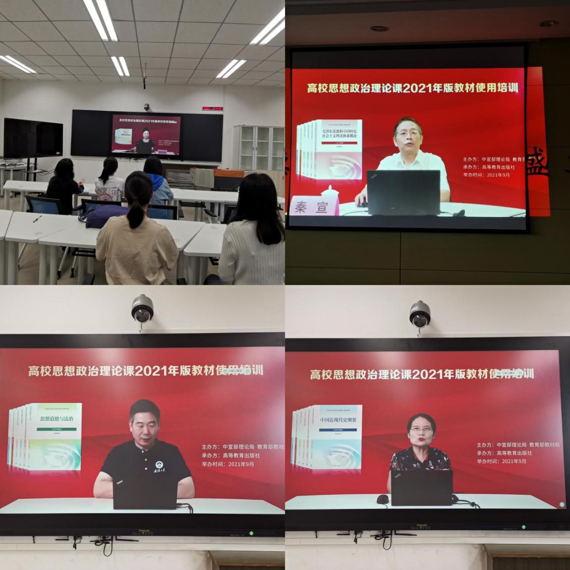 9月27日至29日,学院组织全体思政课专兼职教师参加了教育部高校思想政治理论课2021年版教材使用培训会。各位老师通过收看直播、回放、集体备课等形式圆满完成了全员培训。