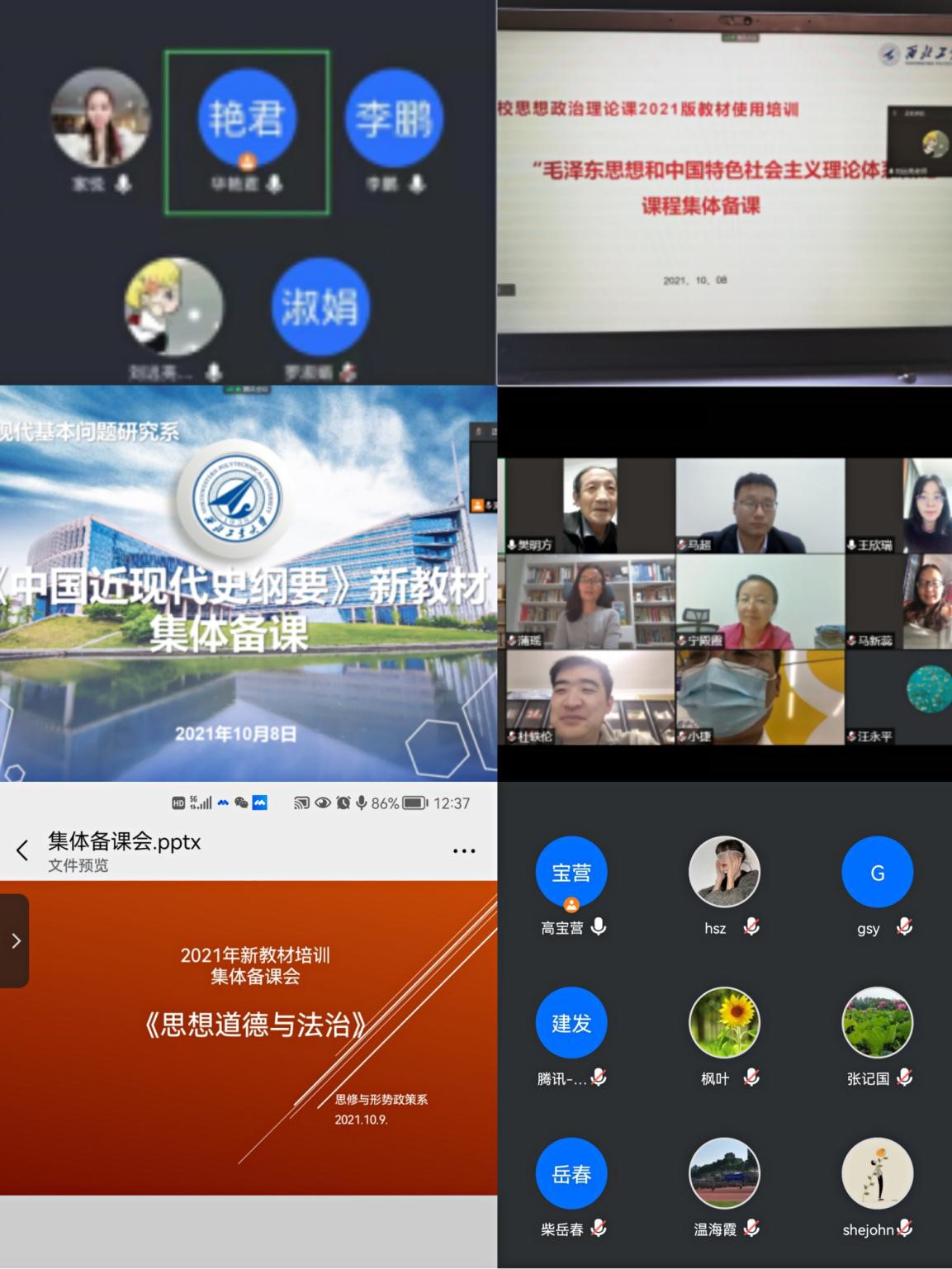 《思想道德与法治》课程负责人高宝营表示:9月28日下午我系全体9位思修课教师参加了教育部教材局举办的思政课《思想道德与法治》课2021年版新版教材使用的培训班学习。听了沈壮海和陈大文两位教授对教材的修订说明与内容解读,为本课程的教学方向提供了更为精准的把握,对本课程的教学目的更加明确。对我系的教学备课有实质性指导和帮助,有助于提高教学质量和效果。每一位教师都认真学习,保质保量修满了4个学时,并参加线上考试,达到了学习致教的要求与目的。为进一步巩固学习成果,10月9日中午,我系采用腾讯会议的形式,全员参加了集体备课会,并在会上提醒大家进一步吃透新版《德法》教材的教材体系,将教材体系很好地转化为教学体系,应用于正在进行的教学活动中。