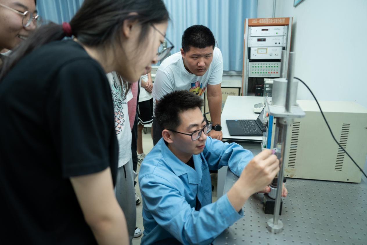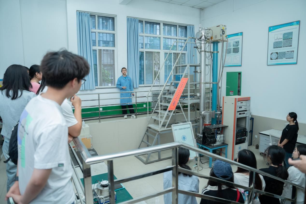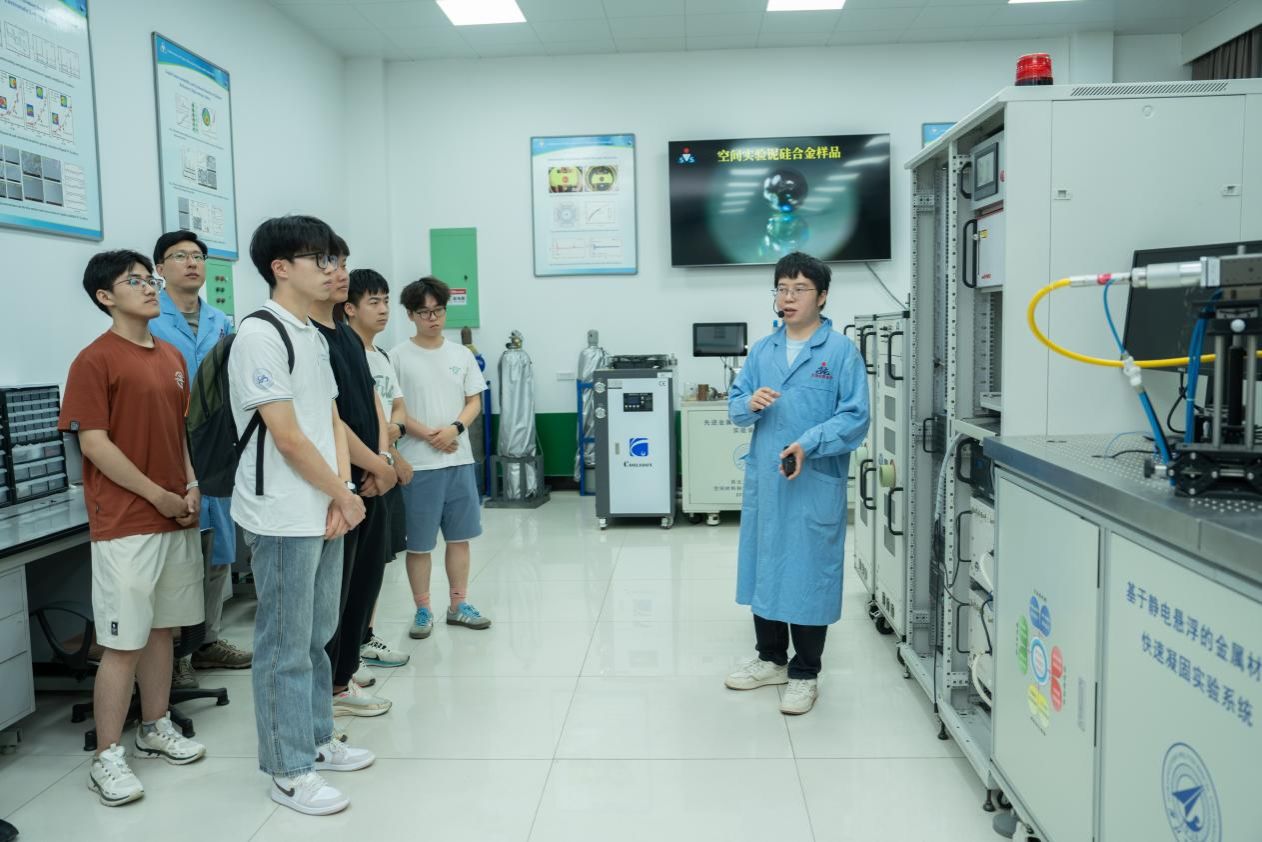 在翟薇教授带领下,同学们先后参观了高真空落管实验装置实验室、静电悬浮实验室、电磁悬浮实验室、超声悬浮实验室、气动悬浮实验室等,参观过程中,实验室的研究者不仅现场演示了部分设备的运行原理,而且还耐心解答学生提问。