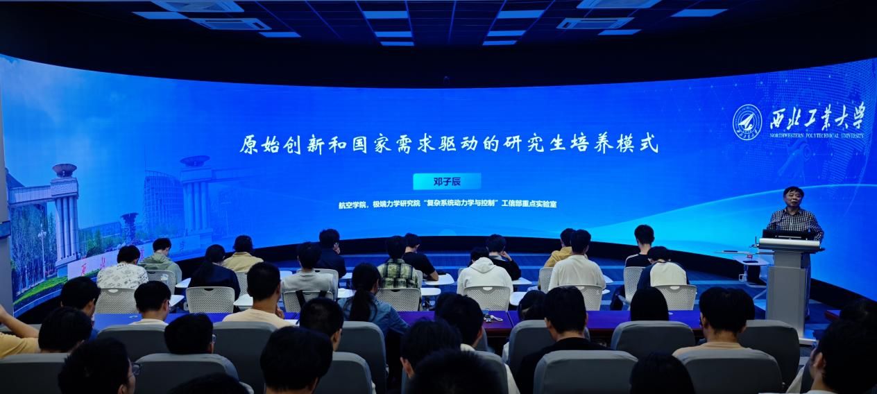 在课程讲授中,邓教授首先以学科发展脉络为切入点,系统梳理了西北工业大学航空航天学科的演进历程与当前发展态势,进而深入阐述了该学科在人才培养方面取得的显著成果及采取的关键举措,全面勾勒出学科人才培养体系的整体框架。课程后半段,邓教授则聚焦研究生培养领域,从培养背景、核心举措到实践成效展开详细介绍,生动展现了学校在研究生培养过程中,以原始创新为鲜明特色、以国家战略需求为根本导向的独特育人模式。