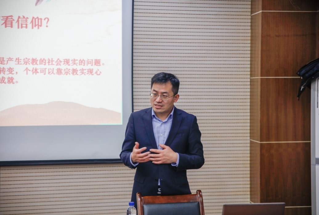 随后,由陈培永老师为广大师生作报告。陈老师一共讲了三个问题,第一,理性与信仰的关系问题。陈培永老师从电影《少年派的奇幻漂流》开始引入信仰话题,用幽默风趣的语言,并结合马克思主义经典著作,指出真正的信仰是建立在理性基础之上,经过理性思考之后建立的信仰,才是真正的信仰。第二,马克思主义如何看信仰。陈老师就“宗教是人民的鸦片”这一提法展开论述,将宗教信仰和马克思主义信仰作了区分。提出个体在社会交往中,对马克思主义的信仰分两种,即自觉的或非自觉的马克思主义信仰。第三,如何看“对马克思主义的信仰”。陈老师从人与社会的关系出发,着眼于人类社会,提出马克思主义的信仰要在面向社会、服务社会、改变社会中实现心灵的慰藉、境界的提升,并强调这种信仰是对人本身及其对人的社会的信仰,是对人类社会最终会走向自由人联合体的信仰。陈老师从一部小小的电影解说上升到志存高远的马克思主义信仰主题,用自己独特的思维分析,将人类社会的共产主义远大理想完美地呈现,这既是对信仰的一种诠释,也是对信仰的一种追求。