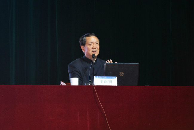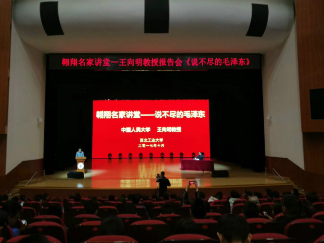 10月30日下午,中国人民大学马克思主义学院教授、博士生导师王向明教授应邀作客我校“翱翔名家讲堂”,在长安校区翱翔学生中心为全校师生做《说不尽的毛泽东》主题报告。副校长万小朋、纪委书记张海兰、党委研究生工作部部长李春科、全体学生工作干部及思想政治理论课教师代表、学生党员代表、毛泽东思想和中国特色社会主义概论课学生代表等1100余人参加了报告会,报告会由党委学生工作部部长、学生处处长张开富主持。