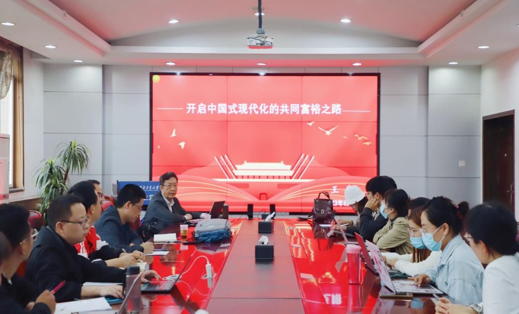 2023年6月4日下午,国家级教学名师、江苏省中国特色社会主义理论体系研究中心南京航空航天大学基地主任王岩教授应邀为西北工业大学师生作题为“开启中国式现代化的共同富裕之路”的学术报告。报告在马克思主义学院楼208会议室举行,我院青年教师马超、陈亚丽、张起梁以及研究生三十余人参加,报告由学院副院长张云龙教授主持。