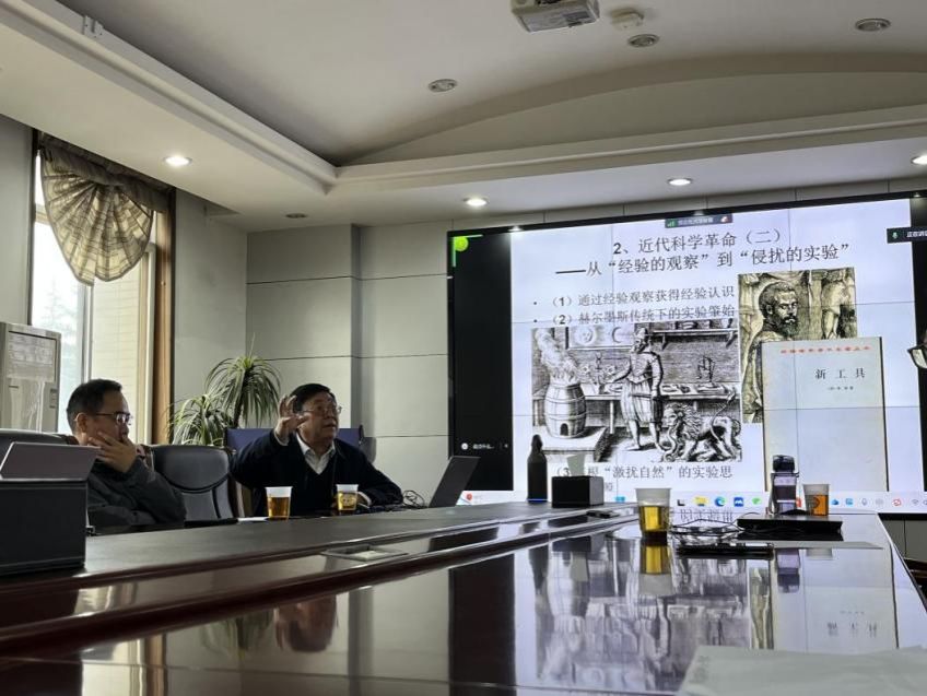 肖显静教授首先讲述了人类文明发展过程中的科学革命问题,提到了人类文明经历的四个阶段,并讨论了古代文明中的科学现象,如神学科学和自然哲学等。例如,古希腊的自然哲学认为世界的本源是元素,这被认为是新一次的科学革命。随着阿拉伯世界的崛起,自然哲学逐渐成为独立学科,并在文艺复兴时期推动了近代科学革命的发生。总体来说,神学与自然科学之间并非简单的对立关系,而是相互促进、共同发展的过程。
