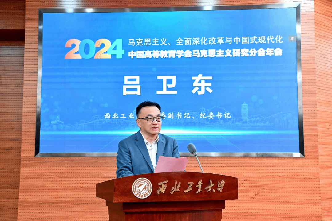 吕卫东代表西北工业大学向与会嘉宾的到来表示热烈欢迎,并介绍了西北工业大学丰硕的育人成果和鲜明的办学特色。西北工业大学高度重视文科建设,始终把马克思主义学院工作摆在重要位置,形成了集全校之力办好马克思主义学院的工作氛围和机制。为了深入学习研究宣传党的二十届三中全会精神,不断丰富发展当代中国马克思主义,西北工业大学邀请来自全国各地的专家学者召开本次会议。期待专家学者们能够围绕年会主题深入研讨、广泛交流,共同为新时代马克思主义理论的创新发展贡献智慧和力量。