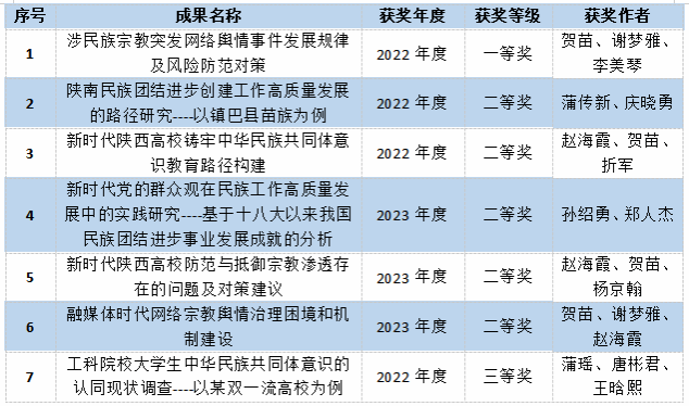 我院荣获2022、2023年度陕西省民族宗教工作优秀调研成果名单