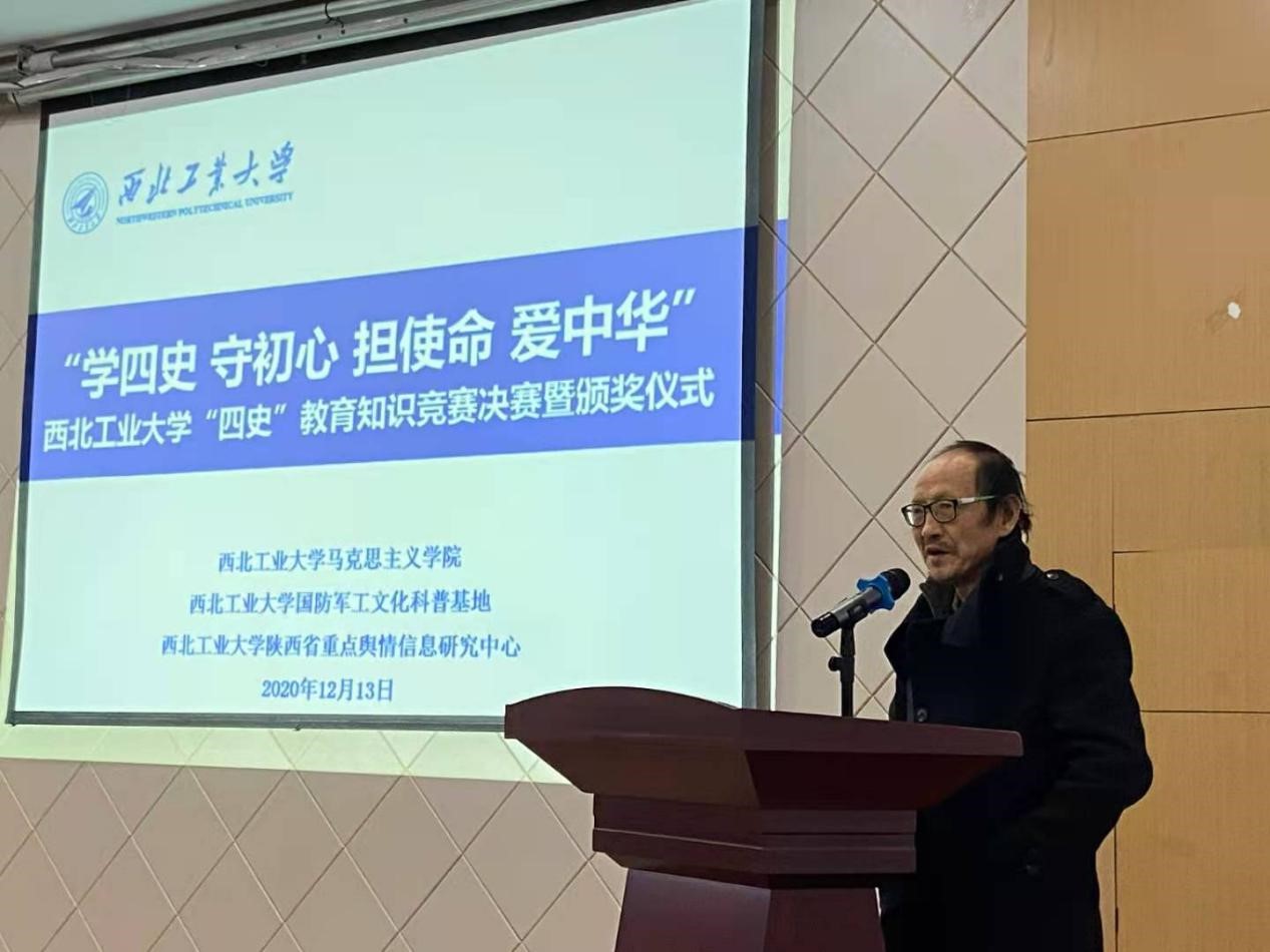 2020年12月13日下午,“学四史 守初心 担使命 爱中华”—“四史”教育知识竞赛决赛及颁奖仪式在西北工业大学马克思主义学院207会议室召开。此次竞赛由西北工业大学马克思主义学院中国近现代史系、国防军工文化科普基地、陕西省重点舆情信息研究中心共同主办。西北工业大学马克思主义学院樊明方教授、蒲瑶教授、陕西省重点舆情信息研究中心主任贺苗副教授、中国近现代史纲要系全体教师及参赛学生参加了本次决赛。会议由马克思主义学院中国近现代史系教学主任赵海霞副教授主持。