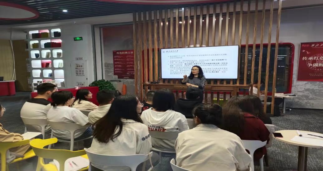 为深入学习贯彻习近平总书记在庆祝中国共产党成立100周年大会上的重要讲话精神,推进党史学习教育的深入开展,西北工业大学马克思主义学院组织成立了思政课教师党史宣讲团。2021年9月24日,马克思主义学院蒲瑶教在学校图书馆一楼红色书屋为工大学子送讲。