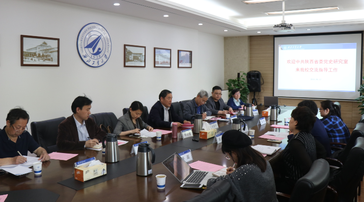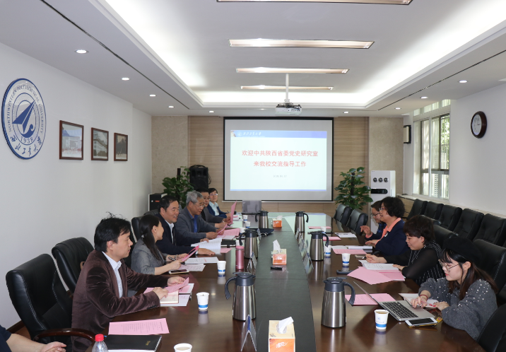 4月18日,陕西省委党史研究室一行来我校调研,就中共党史党建与学校领导老师展开交流。会议在友谊校区行政楼A223召开,省委党史研究室来访座谈的有副主任梁月兰、科研规划处处长耿兰、科研规划处副调研员赵炜,我校党委副书记陈建有、马克思主义学院院党委书记鲁卫平、院长杨云霞,宣传部副部长张啸川及五级职员陆佩华,科学技术研究院人文社科部部长李正锋以及相关研究领域师生代表马院肖周录教授和博士生李懿出席了此次座谈会。会议由鲁卫平主持,会前双方介绍了参会人员情况。