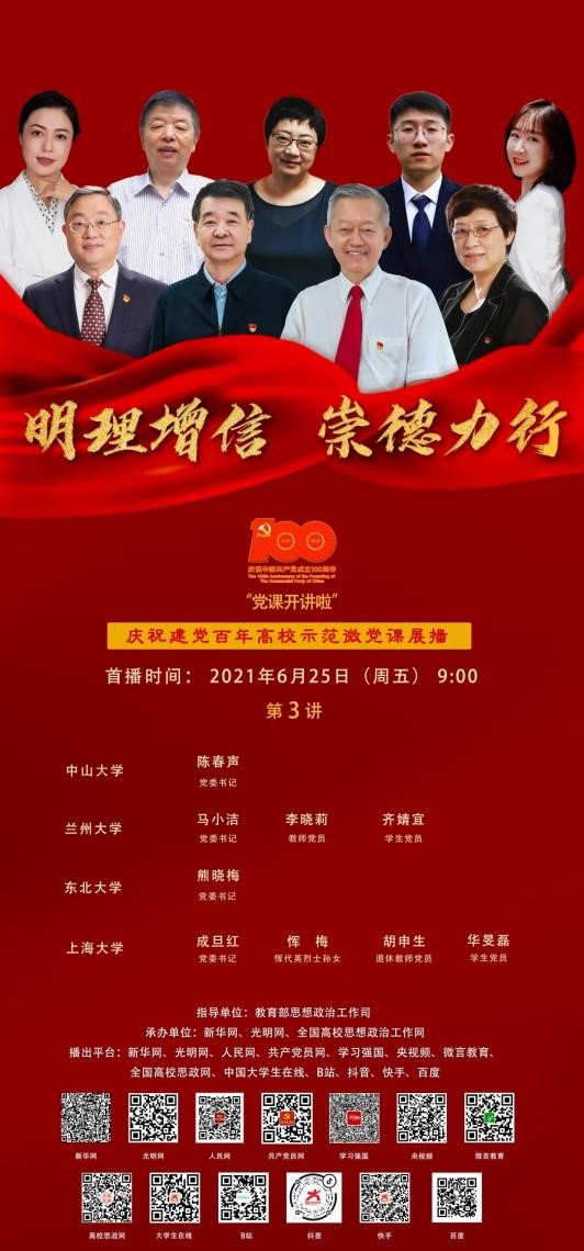 侯若云:本次高校示范微党课展播第三期以爱国力量为主题,讲述在党的领导下广大青年奋起反抗,可歌可泣的英雄故事。“你站立的地方,正是你的中国。你怎么样,中国便怎么样。你是什么,中国便是什么。你有光明,中国便不黑暗。”这句话我们一定都能感同身受,在这样的新时代下,每位青年都要有自己的社会责任,“天下兴亡,匹夫有责”青年人不应该是“迷惘的一代”“懦弱的一代”,而应该是更加有毅力、有朝气、有担当、有梦想、有行动的一代人。百年恰是风华正茂,今天我们青年一代又在追逐一个个蓬勃的青春梦想。广大青年要从党史中汲取奋进力量,让青春在为祖国、为民族、为人民、为人类的不懈奋斗中绽放绚丽之花。