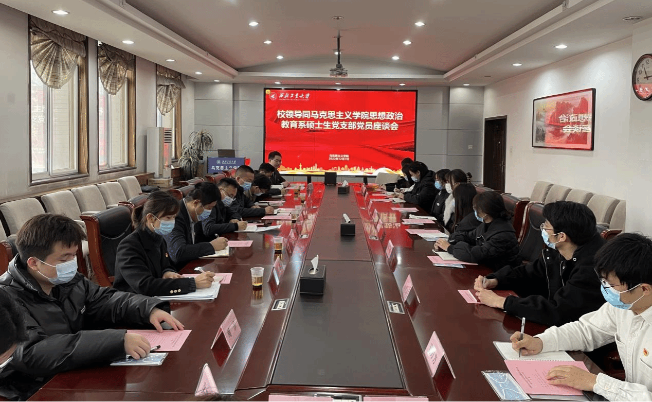 2022年12月7日上午,西北工业大学党委副书记、纪委书记吕卫东来到马克思主义学院思想政治教育系硕士生党支部,同支部党员、发展对象和入党积极分子进行座谈交流。学院党委副书记(主持工作)蒲传新、党委副书记李刚、团委书记王换、博士生辅导员高红波一同参加会议。会议由思想政治教育系硕士生党支部书记张昊主持。