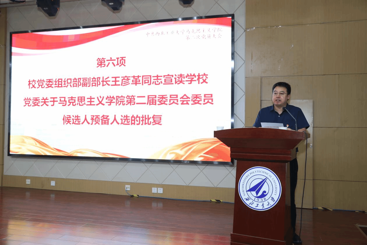 2023年6月29日下午,中共西北工业大学马克思主义学院第二次党员大会在长安校区学院楼207报告厅召开。学校党委副书记杨晓,党委组织部副部长王彦革出席,学院全体师生党员参加大会,学院党外人士代表列席会议。会议由学院院长杨云霞主持。