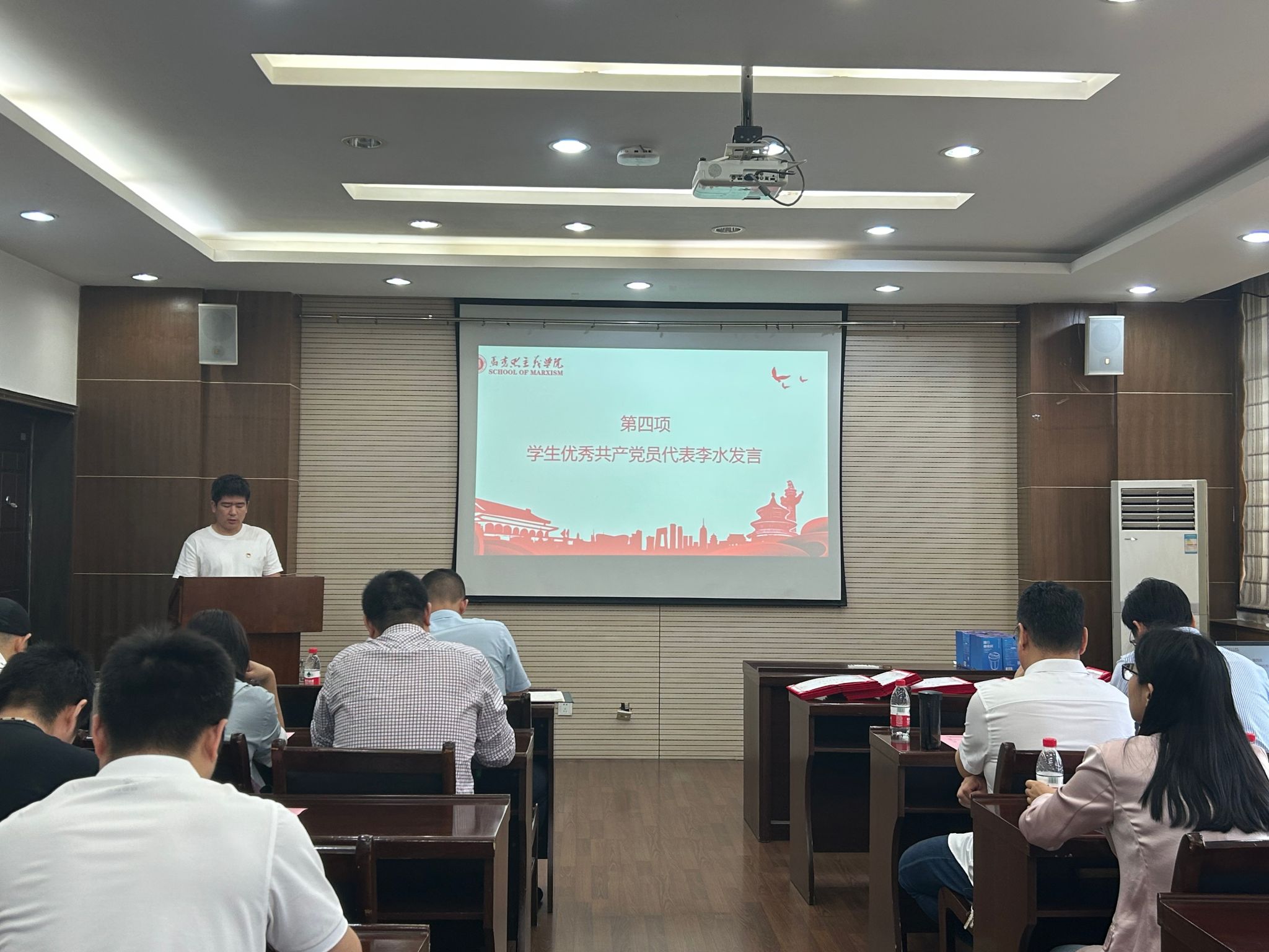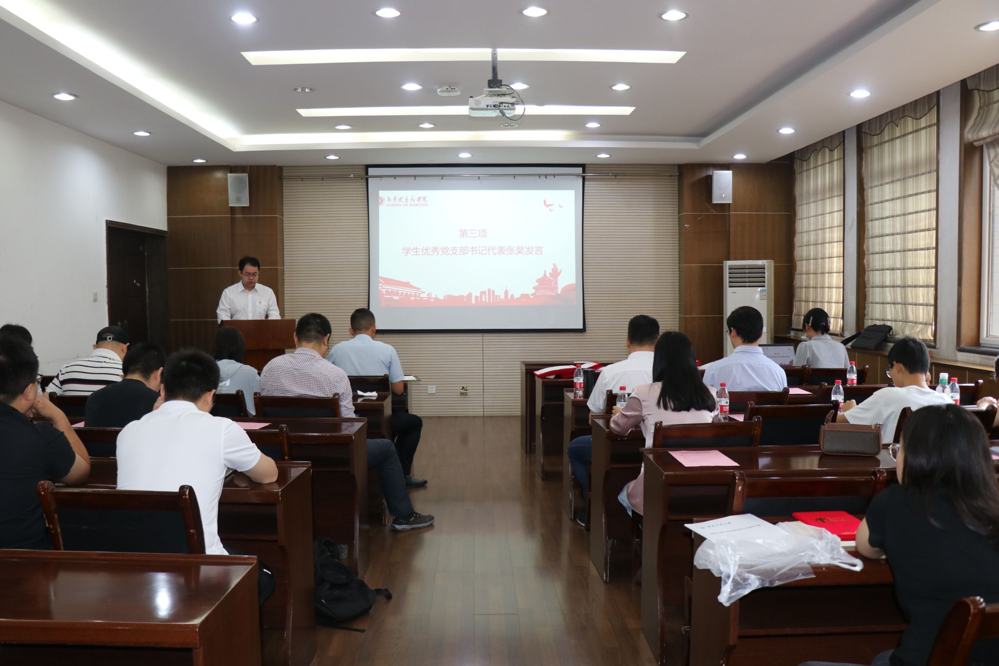 接着,学生优秀党支部书记代表张昊和优秀共产党员代表李水发表了获奖感言。两位同志对党组织给予的肯定表达了衷心的感谢,并表示今后将继续努力,持续发挥榜样作用,以更饱满的斗志投入到学习和工作中,为集体做贡献做表率。