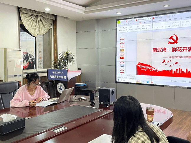 为深入开展学习贯彻习近平新时代中国特色社会主义思想主题教育,创新形式推进党史学习教育,积极推进我院“一院一品”学生思政精品项目培育创建工作,9月22日晚七点半,西北工业大学马克思主义学院马克思主义基本原理系硕士生党支部、马克思主义中国化研究系硕士生党支部、中国近现代史基本问题研究系硕士生党支部、思想政治教育系硕士生党支部和博士生第三党支部于学院楼208会议室联合开展“嘹亮红歌映党史 讲述红歌背后的故事”主题党日活动,一起唱红歌、讲党史、颂党恩。会议由马克思主义基本原理系硕士生党支部委员崔颖文主持。
