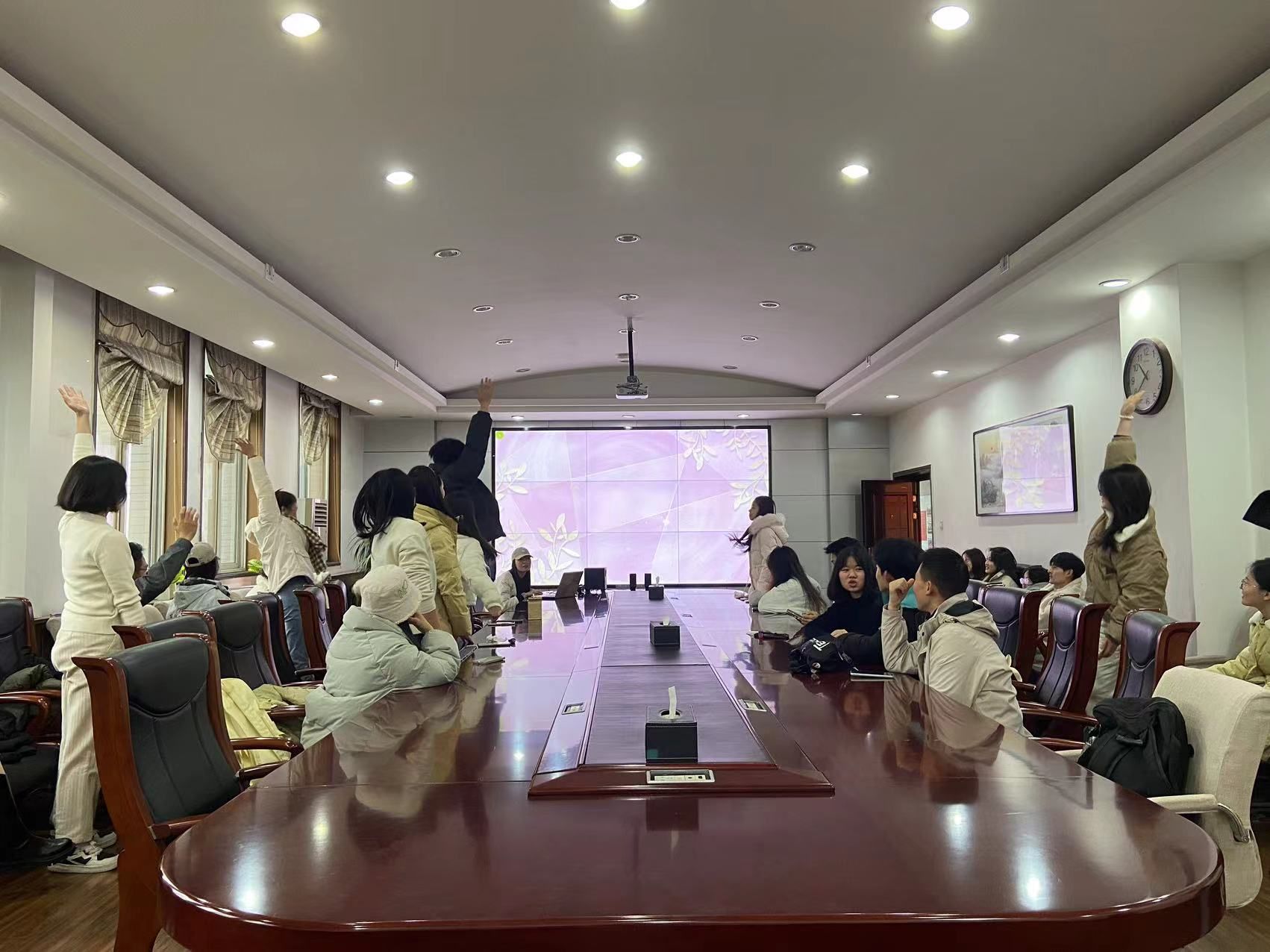 活动在全体成员齐声高唱《歌唱祖国》中落下帷幕,大家用歌声抒发了对党的无限热爱和深情祝福,展现了马克思主义学院学子昂扬的精神面貌和赤胆忠心。