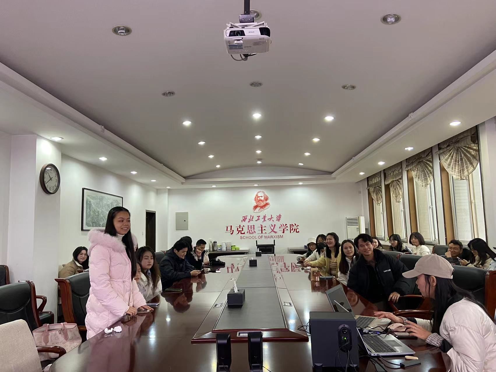 为深入开展学习贯彻习近平新时代中国特色社会主义思想主题教育,牢牢把握“学思想、强党性、重实践、建新功”总体要求,11月11日上午10点,西北工业大学马克思主义学院“一院一品”活动“嘹亮红歌映党史”之党史知识竞答在学院208会议室成功举办。此次知识竞答活动由马克思主义学院兼职辅导员王提滢主持,学院各年级硕士生踊跃参赛。