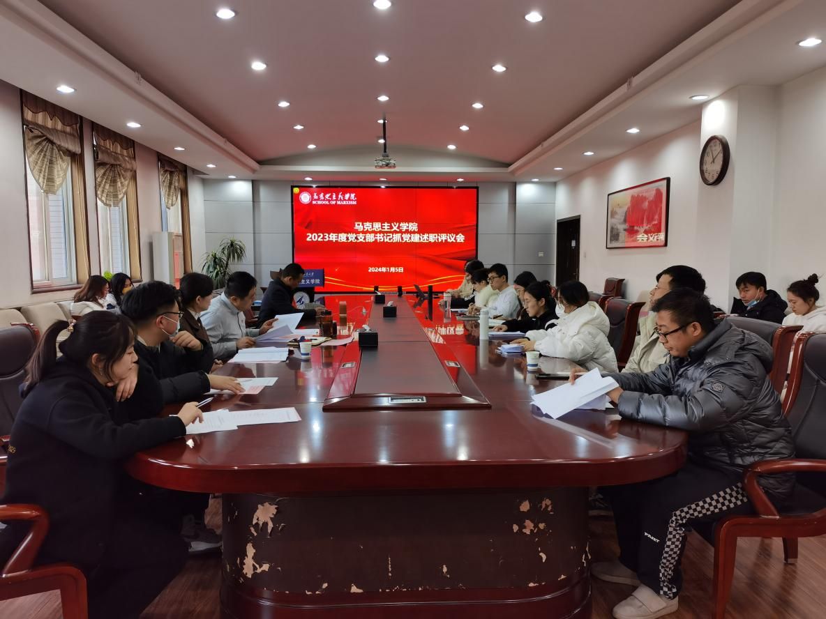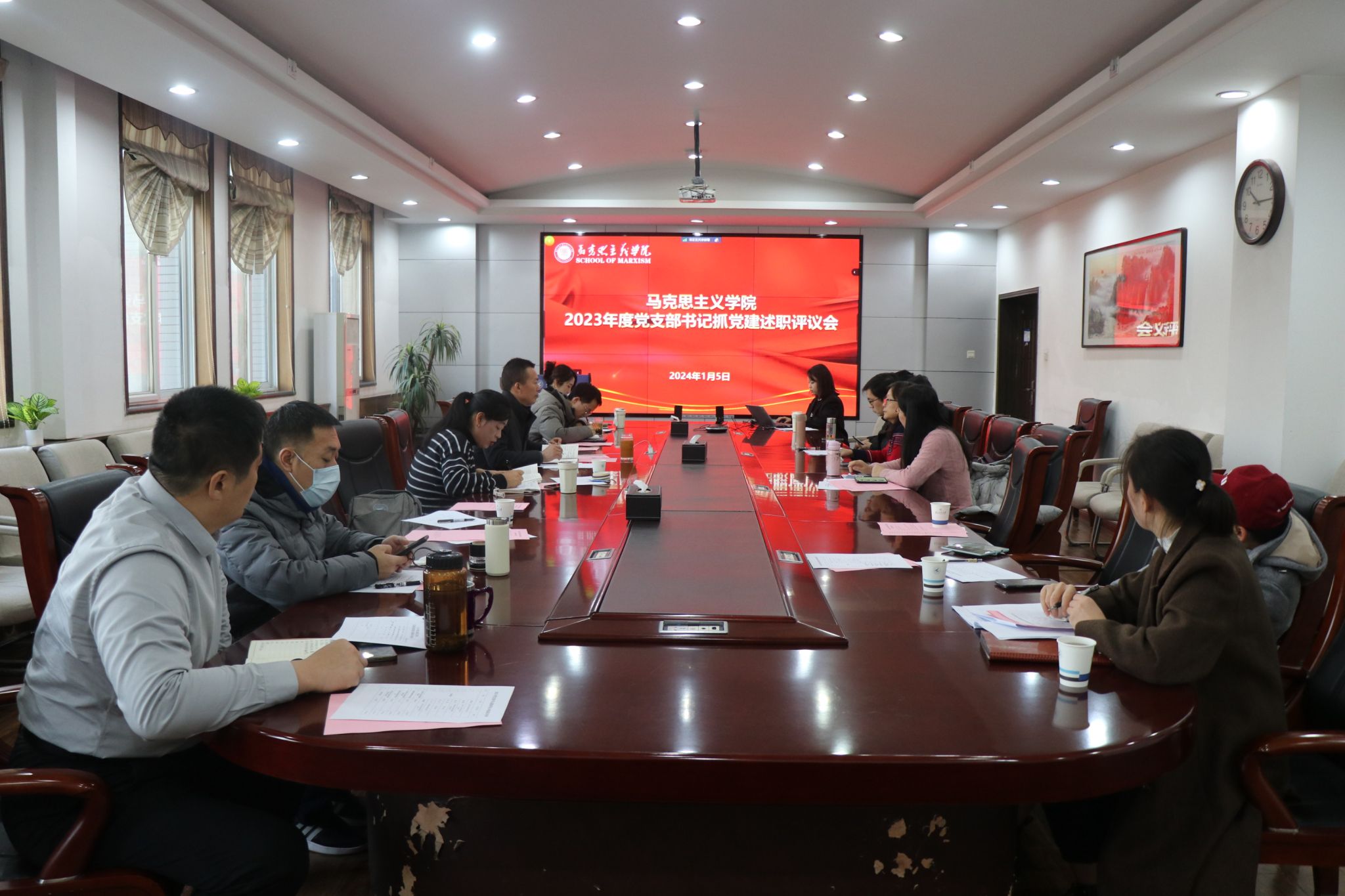 为进一步推动全面从严治党向基层延伸,切实提升党建工作质量,按照学校《关于开展2023年度党支部书记抓党建述职评议考核的通知》要求,2024年1月5日上午,马克思主义学院在学院楼208会议室召开了2023年度党支部书记抓党建述职评议考核会。学院领导班子、党委委员、师生党支部书记、师生党员代表等参加会议。会议由学院党委书记蒲传新主持。