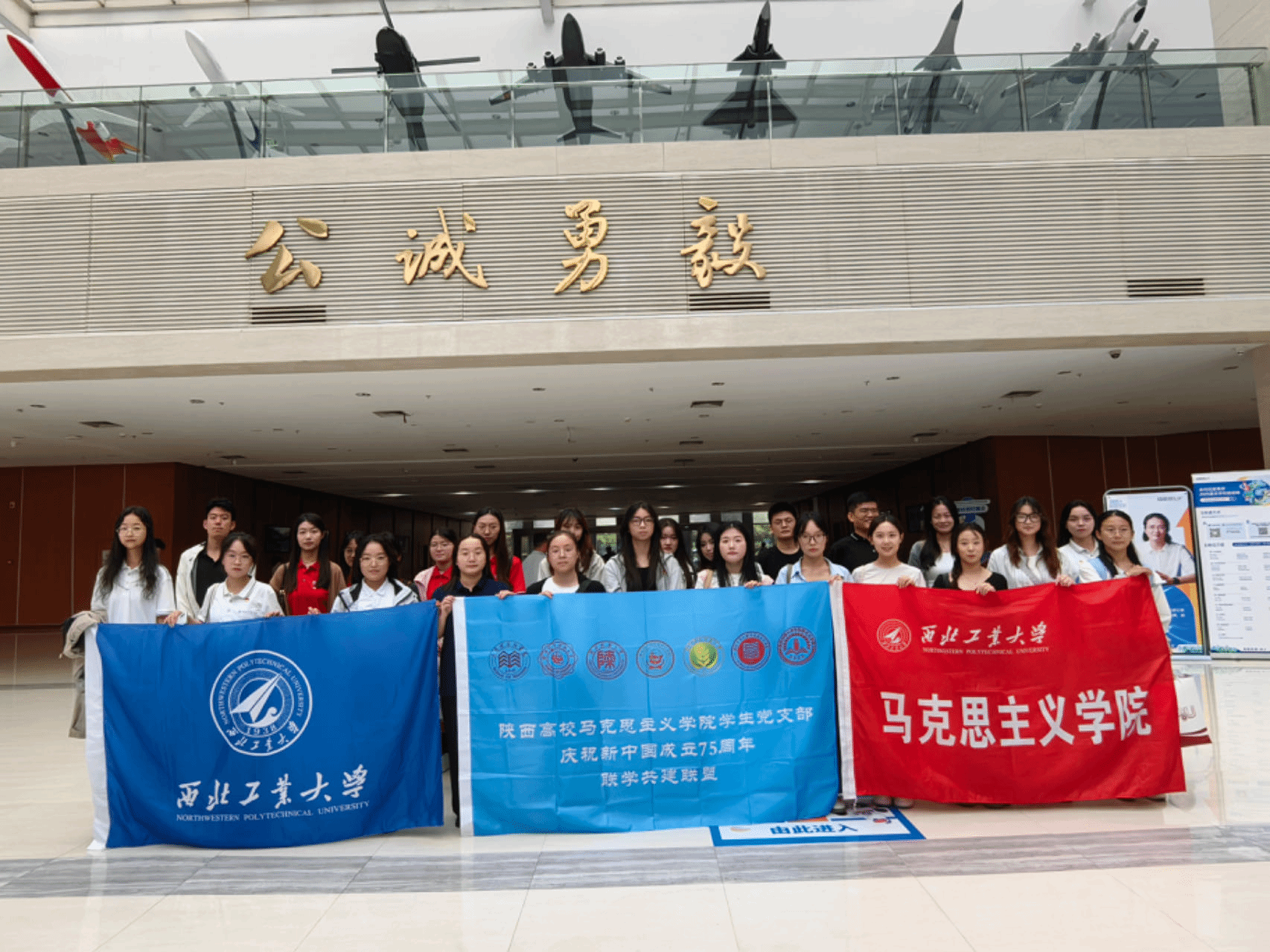 会后,与会学生党支部成员共同参观了西北工业大学校史馆和航空博物馆。通过珍贵的历史照片、丰富的文献资料以及各类航空器模型,同学们从西工大“脉源三支”的深厚底蕴中感受独有的“西工大现象”,进一步领悟“总师育人文化”的深刻内涵,激发爱国主义精神,增强民族自信心和自豪感。