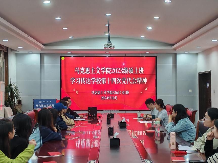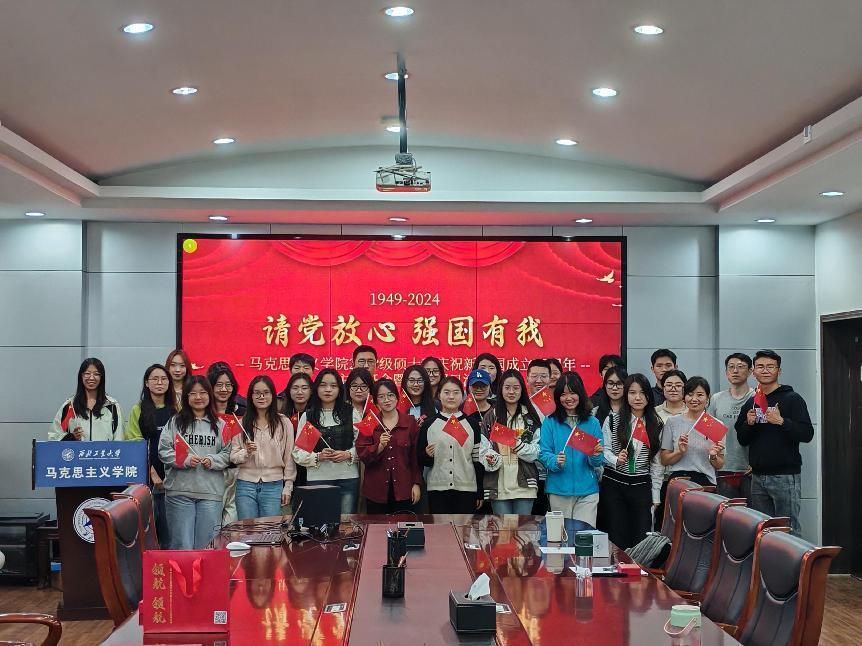为庆祝新中国成立75周年,深入学习领会学校第十四次党代会精神,凝聚全面建设社会主义现代化强国、建设中国特色世界一流大学的奋进力量,2024年10月14日晚七点,西北工业大学马克思主义学院2023级硕士班在学院208会议室举办“请党放心 强国有我”主题班会暨主题团日活动。本次活动由2023级硕士班班长陈宗超主持,辅导员王换、班主任吕焰受邀参加。