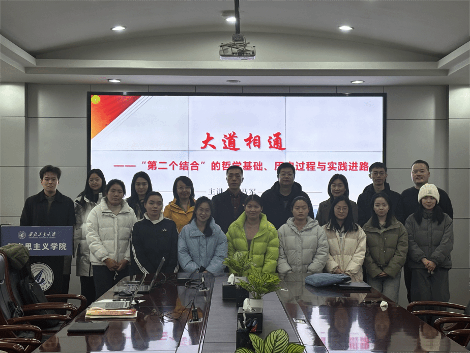 2024年12月9日下午,西北工业大学马克思主义学院院长助理马军应邀在学院楼208会议室讲授“大道相通——‘第二个结合’的哲学基础、历史过程与实践进路”专题党课。本次党课由思想政治教育系党支部书记鲁杰主持,思想政治教育系党支部联合思想政治教育系硕士生党支部全体党员共同参与学习。在场师生学习氛围浓厚,讨论热烈。