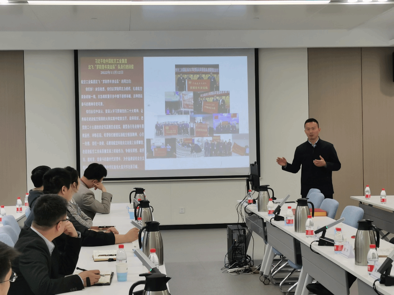 会议最后,一飞院人力资源部窦田天介绍了一飞院当前人才招聘需求,他热忱欢迎心怀航空报国梦想、立志建功立业的青年人才能够关注并加入一飞院,不忘初心、牢记使命,勇于担当,发愤图强,共同谱写航空报国、航空强国新篇章。