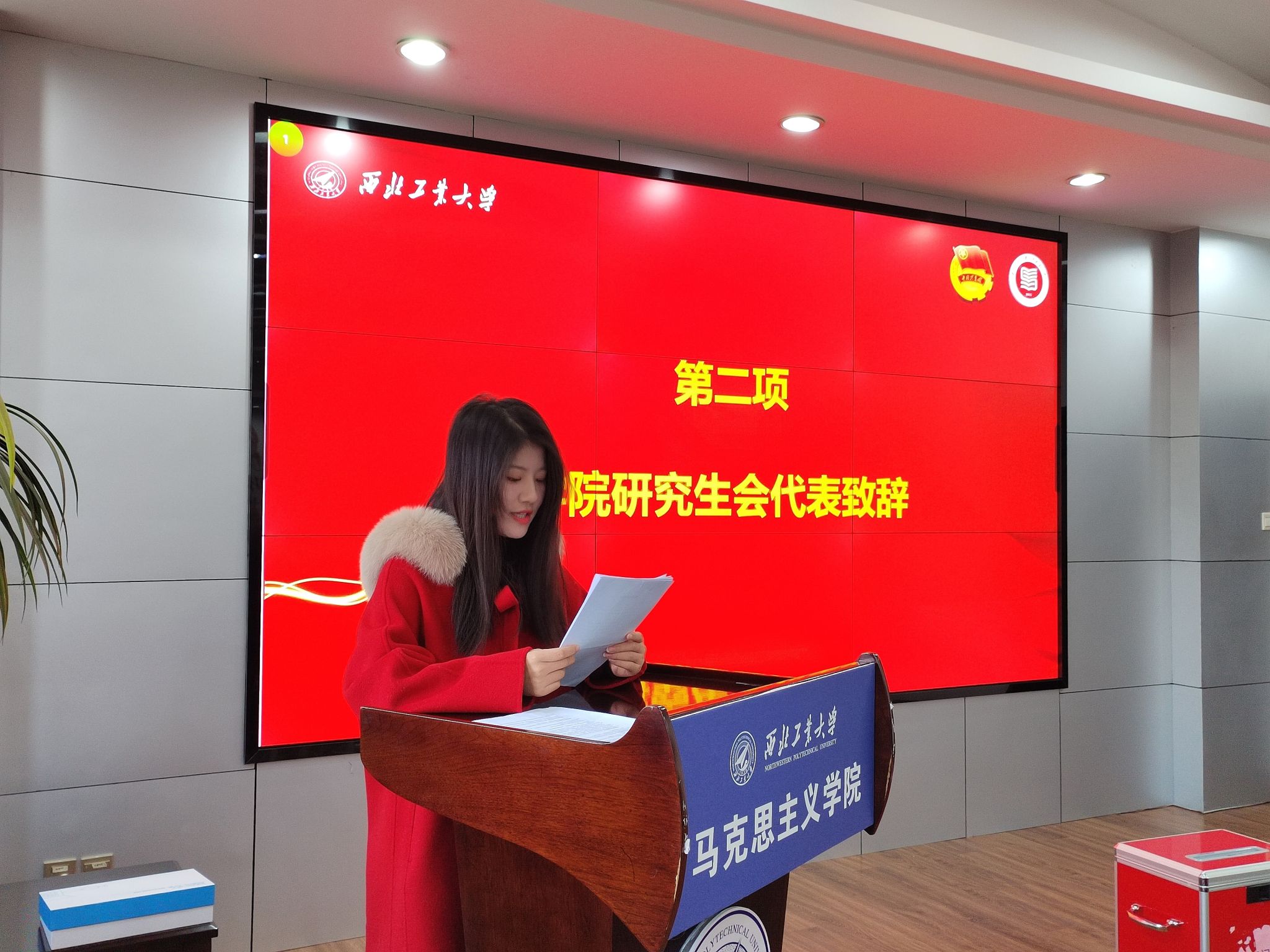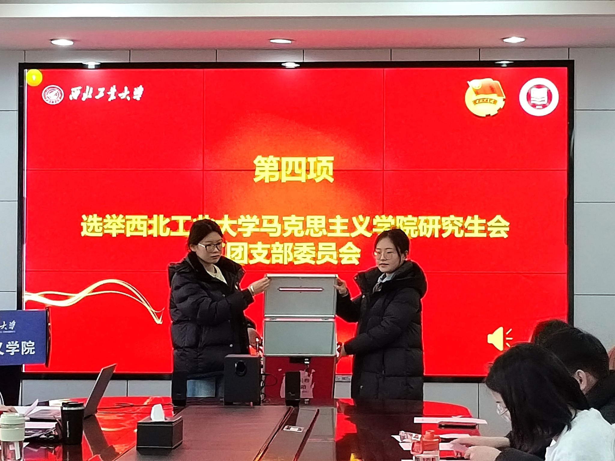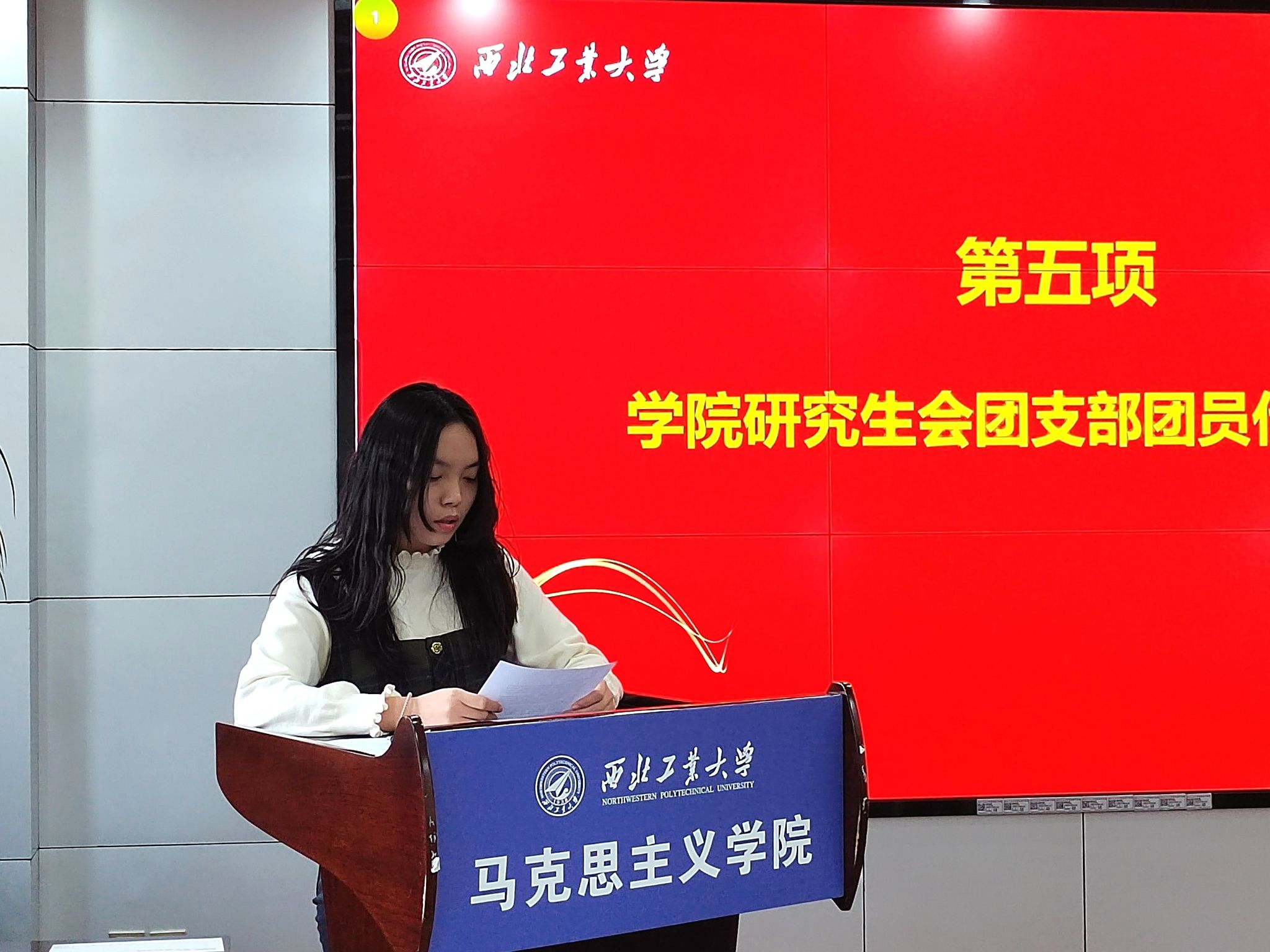 接着,李刚宣读了《关于成立西北工业大学马克思主义学院研究生会团支部的批复》。随后,大会进行支部委员选举程序,通过民主选举产生了西北工业大学马克思主义学院研究生会团支部委员会。团员代表雷轲结合自身工作经历分享了自己在服务同学过程中的收获,承诺将不断严格要求自己,加强学习,提升自我,承担起青年责任。