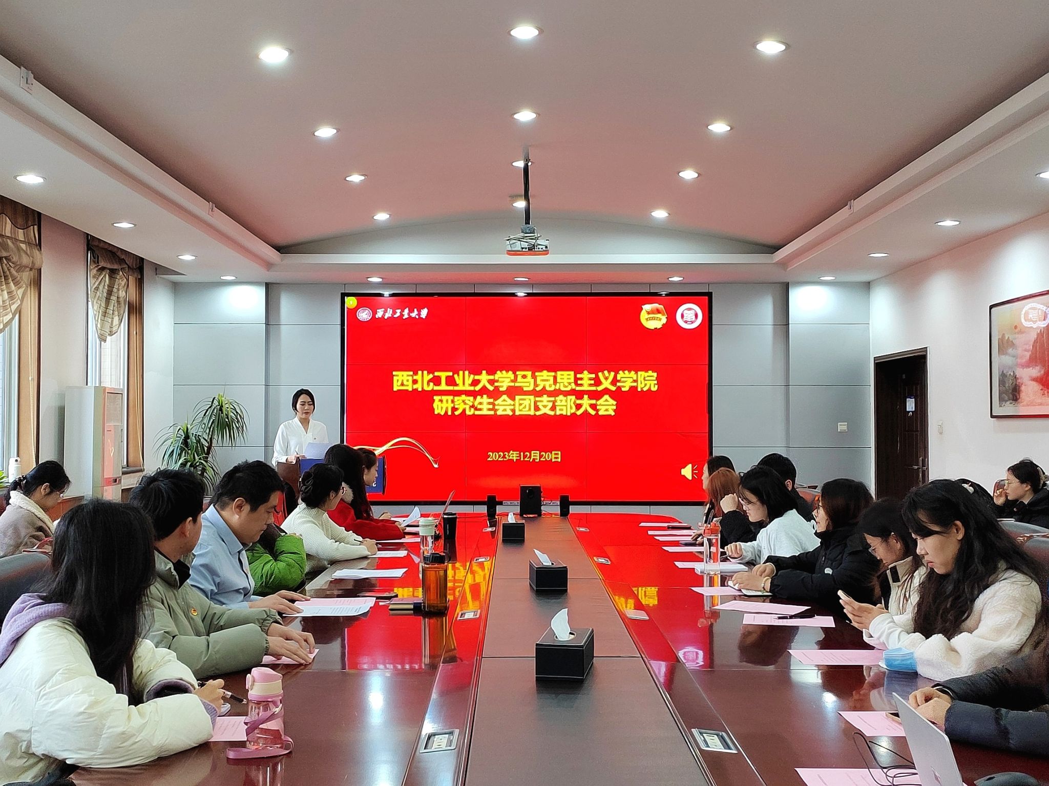 为深入学习贯彻习近平新时代中国特色社会主义思想,按照《关于巩固高校学生会(研究生会)改革成果的若干措施》等文件要求,创新学院研究生会组织模式,加强学院研究生会成员的凝聚力和向心力,2023年12月20日,西北工业大学马克思主义学院研究生会团支部大会暨第一次团日活动在学院208会议室召开,学院党委副书记李刚、团委副书记王芳、全体研究生会成员共同参加。本次大会由学院团委副书记、研究生会主席团成员丁嘉欣主持。