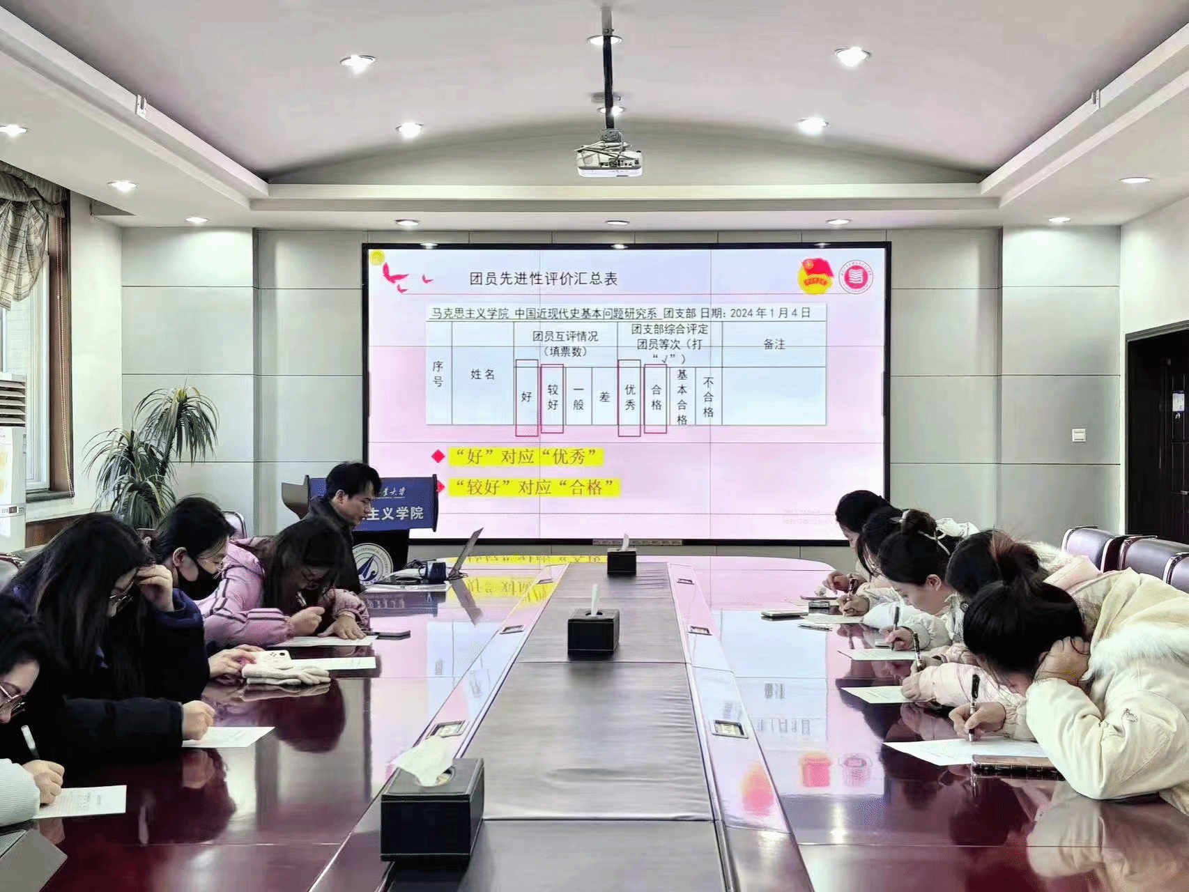 会议第三项,对照团员先进性评价指导标准和参考细则,遵循公平公正原则,各支部组织开展民主评议,根据先进性评价结果确定团员教育评议等次。