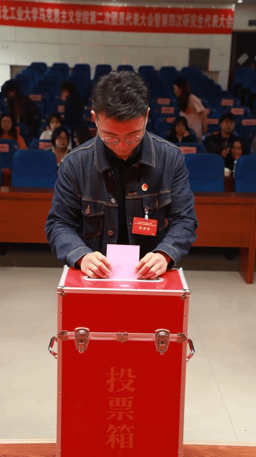 大会第二阶段,参会代表审议通过了《关于西北工业大学马克思主义学院第一届团委会暨第三届研究生会工作报告的决议(草案)》《西北工业大学马克思主义学院第二届团委会暨第四届研究生会主席团选举办法(草案)》《西北工业大学马克思主义学院第二届团委会候选人名单(草案)》《西北工业大学马克思主义学院第二届团委会、第四届研究生会主席团选举总监票人、监票人、总计票人、计票人名单(草案)》,随后进行无记名投票选举,选举产生了马克思主义学院第二届团委会委员7人。