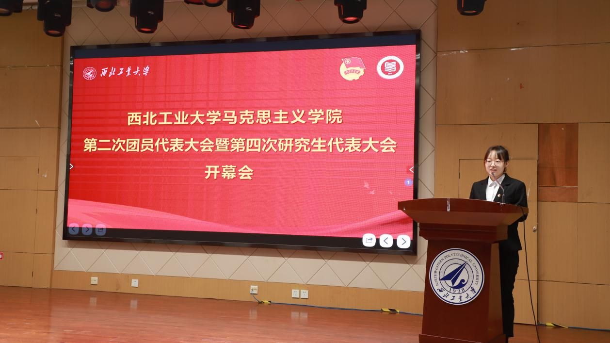 最后,马克思主义学院党委副书记李刚致辞。他肯定了马克思主义学院团委和研究生会在学院党委和校团委的正确领导下,始终不断创新工作思路、凝练工作方法、提升工作实效。同时,他代表学院向青年学子提出了几点希望:一是要坚持以学铸魂,把稳思想之舵,从思想上正本清源、固本培元,以高度的政治自觉接受主题教育锻造洗礼;二是要明确远大目标,锤炼奋斗精神,以真学实干服务人民,以创新创造贡献国家;三是团学干部要发挥模范作用,凝聚先锋力量,努力成长为可堪大用、能担重任的新时代学生骨干。最后,他宣布西北工业大学马克思主义学院第二次团员代表大会暨第四次研究生代表大会开幕。