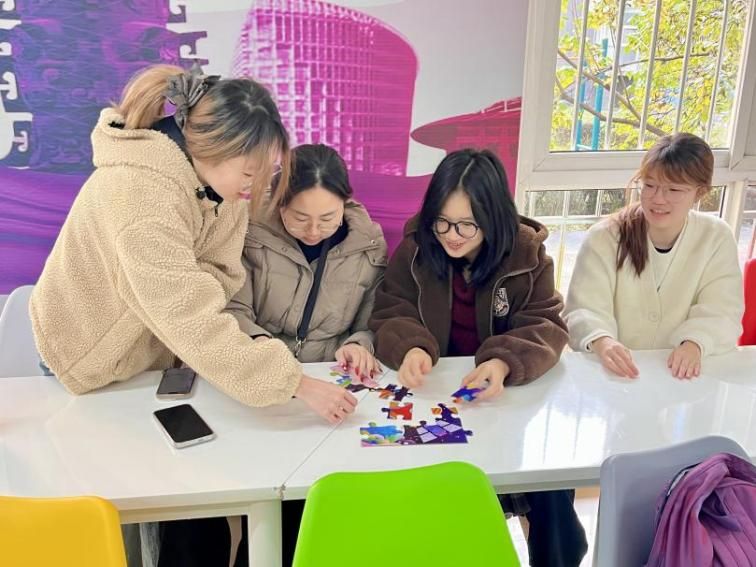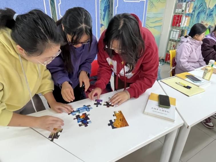 11月13日上午,马克思主义学院在星天苑E座1楼思创空间举办拼图活动,活动以心理成长与目标规划为核心,组织同学们分为三组开展两轮比拼。第一轮活动中,各组在未获得成图提示的情况下自主摸索拼接,部分小组因缺乏明确方向效率不高;第二轮呈现完整成图后,大家快速明确目标、优化分工,拼图时间大幅缩短。通过两轮体验的鲜明对比,同学们深刻体会到明确目标与借鉴经验的重要性,活动有效引导大家在学业科研中主动汲取前辈经验,明晰成长路径与努力方向。