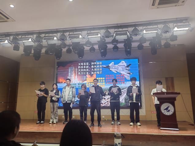 为庆祝中华人民共和国成立75周年,深入学习贯彻落实习近平总书记关于学校思政课建设的重要指示,充分利用和发挥各类资源的思想政治教育功能,推进形式多样、贴近学生、贴近生活的思政社会实践课,形成纵横联动的育人新格局。2024年10月11日,西北工业大学国防军工文化科普基地与西北工业大学马克思主义学院共同组织了主题为“歌唱祖国 礼赞工大”的诗歌朗诵会。