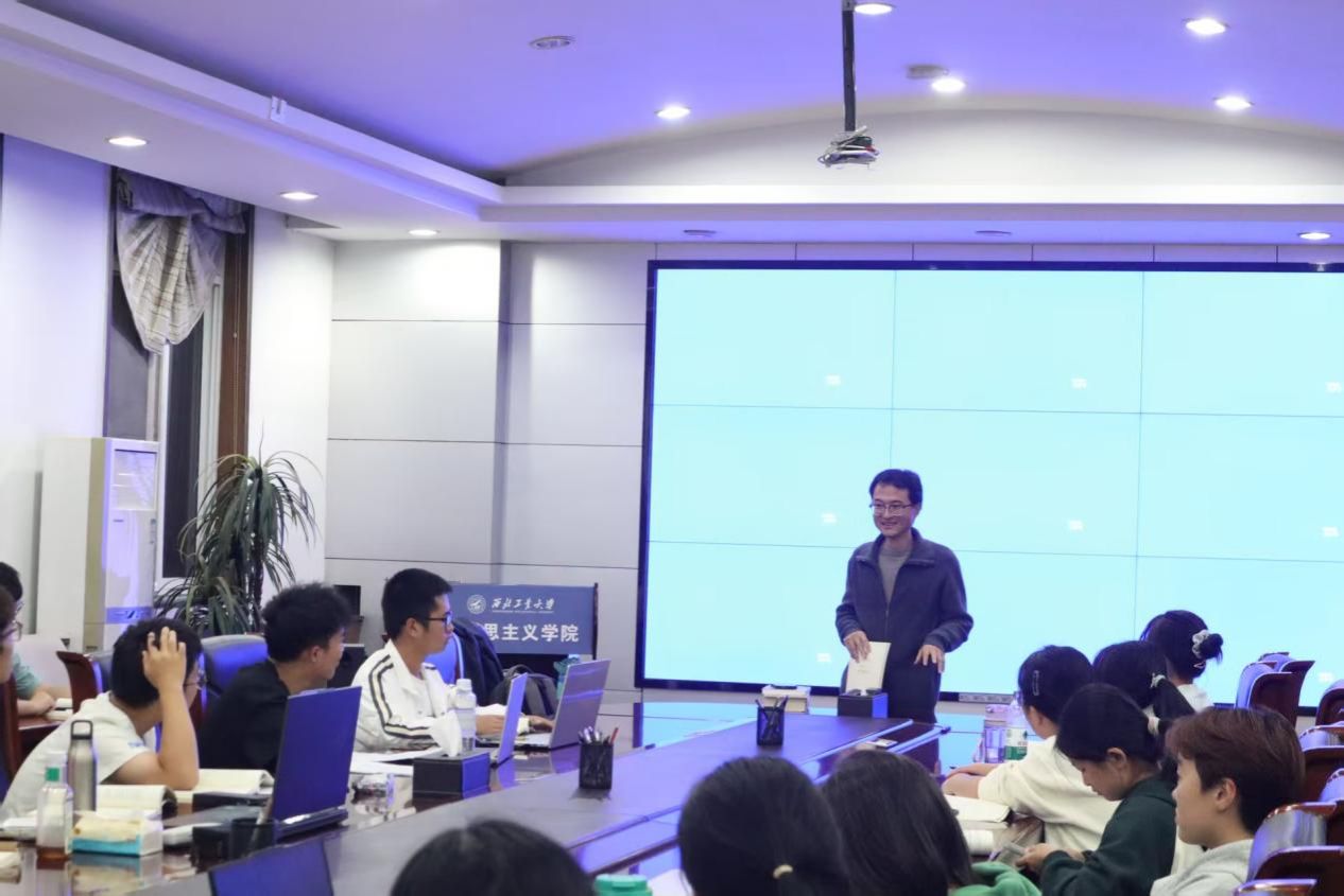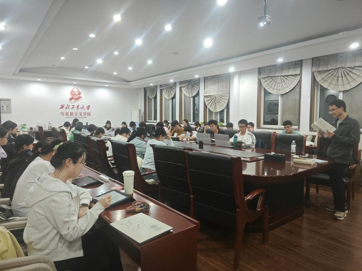 西北工业大学马克思主义学院2025级本科生第二次“松涛读书会”于2025年9月20日举行。本次活动由熊成帅老师指导,2025级全体本科生及学院部分硕博士研究生参与,阅读篇目为《毛泽东早期文稿》与《共产党宣言》。