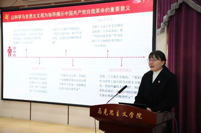紧接着,由西北农林科技大学马克思主义学院马克思主义基本原理教研室李沛莉老师讲授《以科学的马克思主义观为指导推进党的自我革命》主题微课,从理论与实践层面解读新时代廉洁文化建设的内涵与要求。微党课内容翔实、案例鲜活,引导在场青年学子进一步树立廉洁意识,筑牢拒腐防变的思想道德防线。
