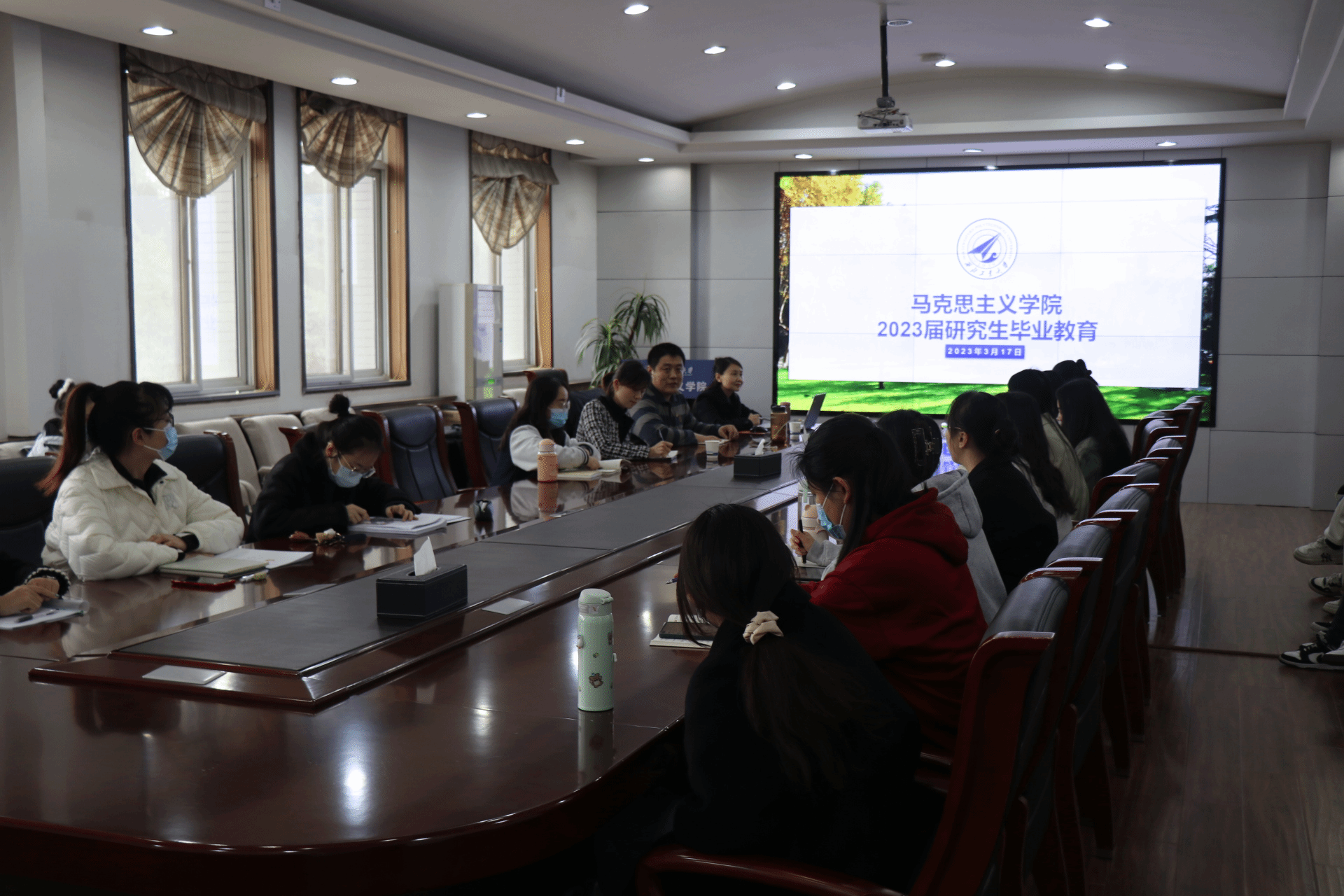为引导毕业生坚定理想信念、厚植爱国情怀,增进毕业生对母校深厚感情,3月17日下午2点,西北工业大学马克思主义学院在学院楼208会议室,顺利开展“工大最后一课”毕业教育活动,院长杨云霞、硕士生辅导员王换及2023届全体毕业生参加此次活动,由学院党委副书记李刚主持。