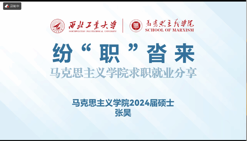 为帮助同学们明确职业规划与发展方向,增进对不同职业的求职流程与基本情况的了解,西北工业大学马克思主义学院于11月2日开展线上就业经验分享交流会。本次活动共邀请五位2024届校友,他们分别从选调公务员、申请博士、硕博连读、思政教师以及入职研究所四个求职方向给同学们分享了宝贵经验,学院党委副书记李刚老师与硕士生们共同参与此次活动。