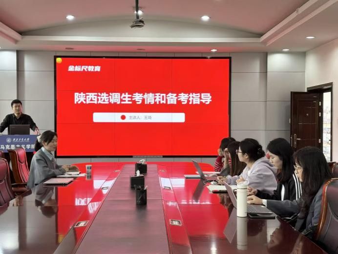 为帮助学生深入了解选调生考试政策,提前谋划和优化备考策略,10月13日马克思主义学院邀请金标尺教育机构专业讲师王琦在学院楼208会议室举办“陕西选调生考情和备考指导”专题讲座。讲座由硕士生辅导员王换主持,学院硕士研究生参加。