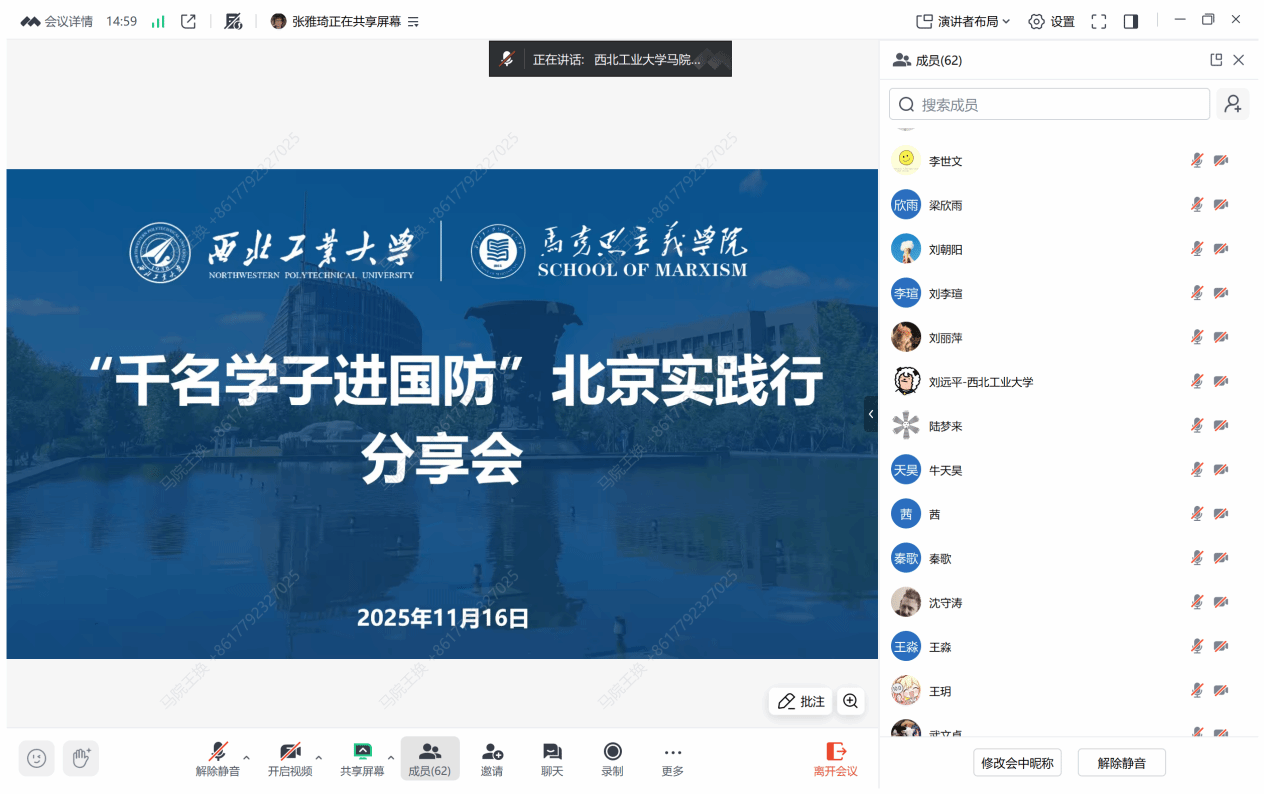 国防实践铸魂,经验分享引路——西北工业大学马克思主义学院成功举办“千名学子进国防”北京实践行线上分享会