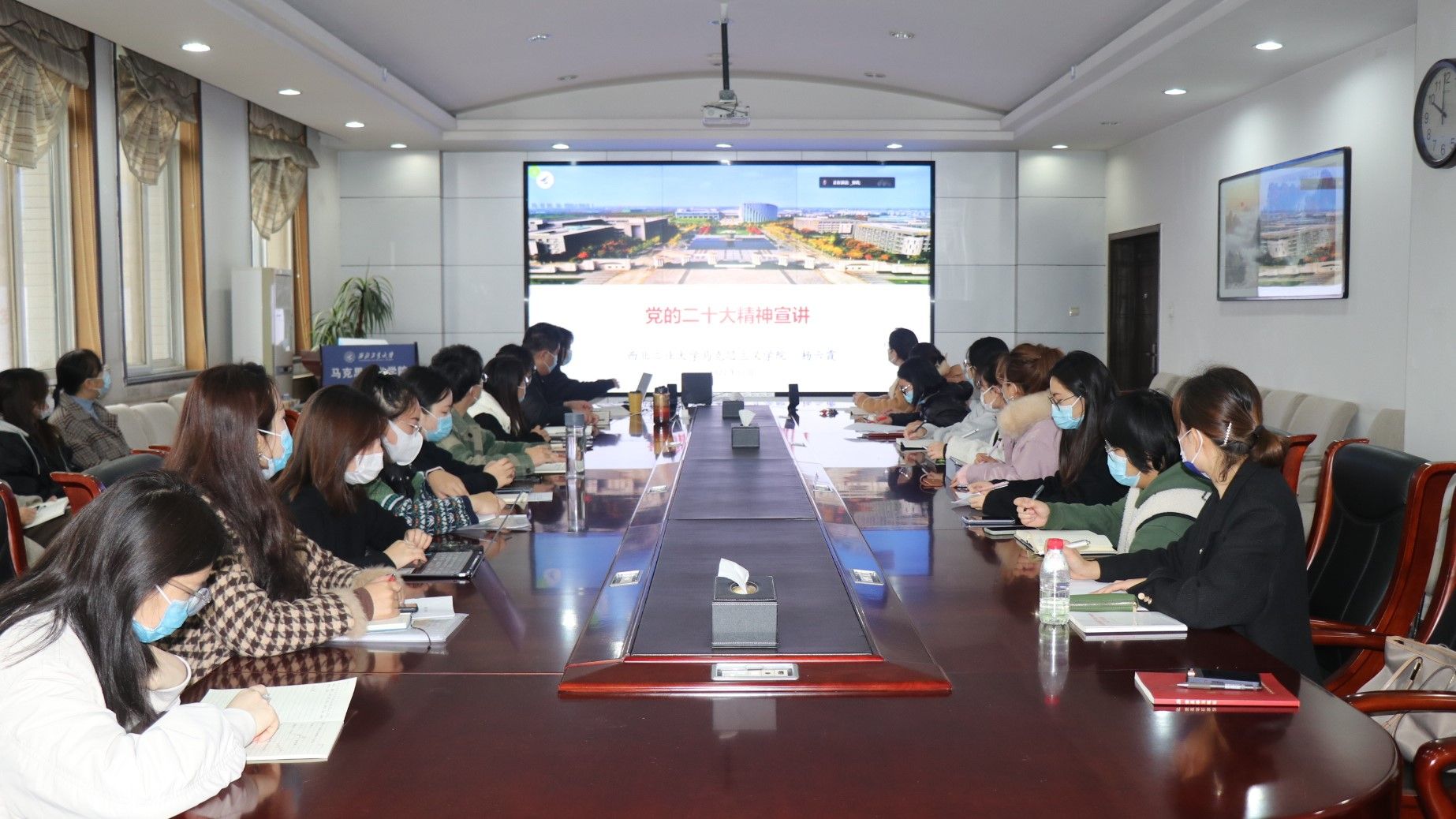 11月16日上午,陕西省党的二十大精神“马院院长宣讲团”宣讲会在我校友谊校区会议中心第一会议室召开。宣讲团成员、我校马克思主义学院院长杨云霞教授作学习贯彻党的二十大精神宣讲,学校党委宣传部副部长全家悦主持宣讲会。马克思主义学院组织学院师生通过线上与线下相结合的方式学习。