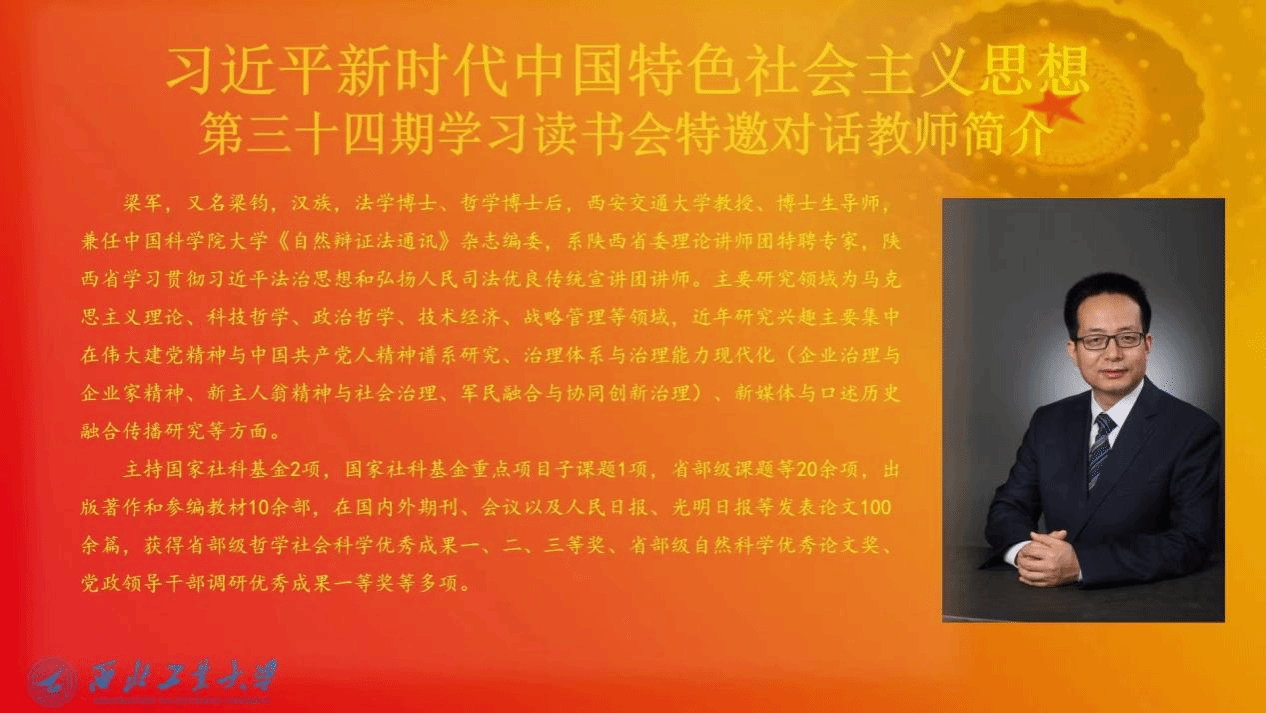 专家简介:梁军,又名梁钧,男,汉族,法学博士、哲学博士后,西安交通大学教授、博士生导师,兼任中国科学院大学《自然辩证法通讯》杂志编委,系陕西省委理论讲师团特聘专家,陕西省学习贯彻习近平法治思想和弘扬人民司法优良传统宣讲团讲师。