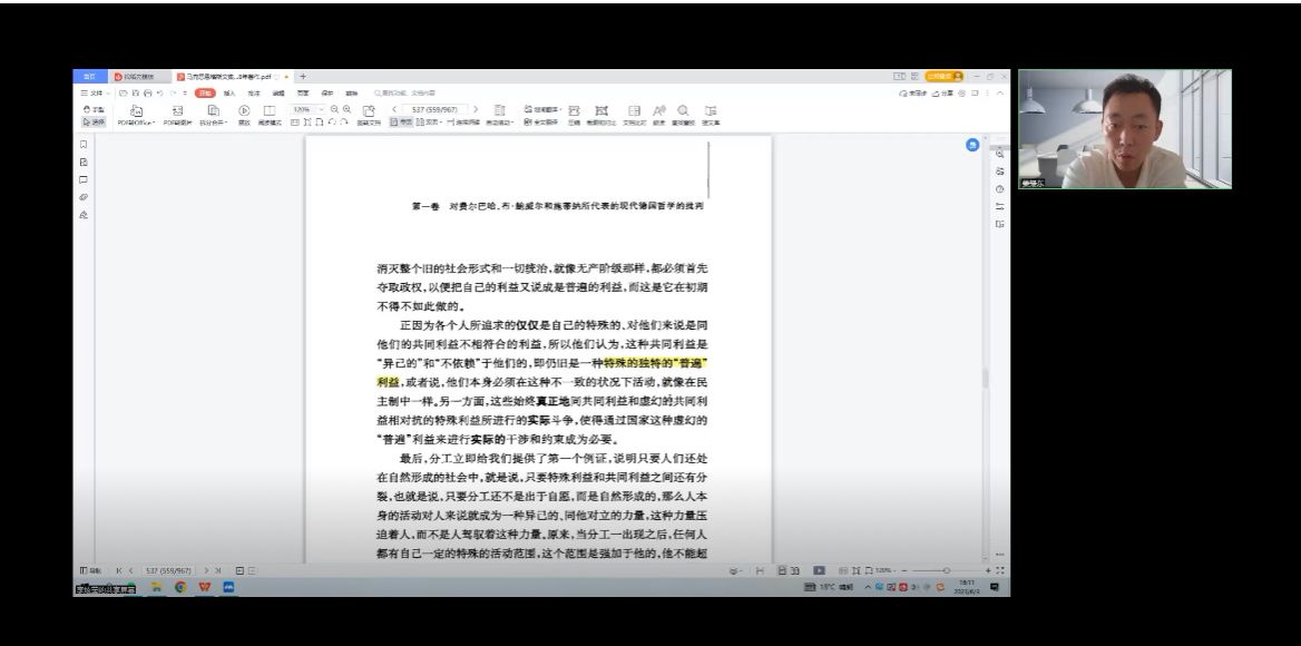 2023年6月3日,西北工业大学马克思主义学院第43期“启真明智”读书会通过腾讯会议顺利举行。本次读书会由学院齐承水老师主持,东北大学姜耀东老师、温州大学张海波老师与硕博同学们一起阅读了《德意志意识形态》。