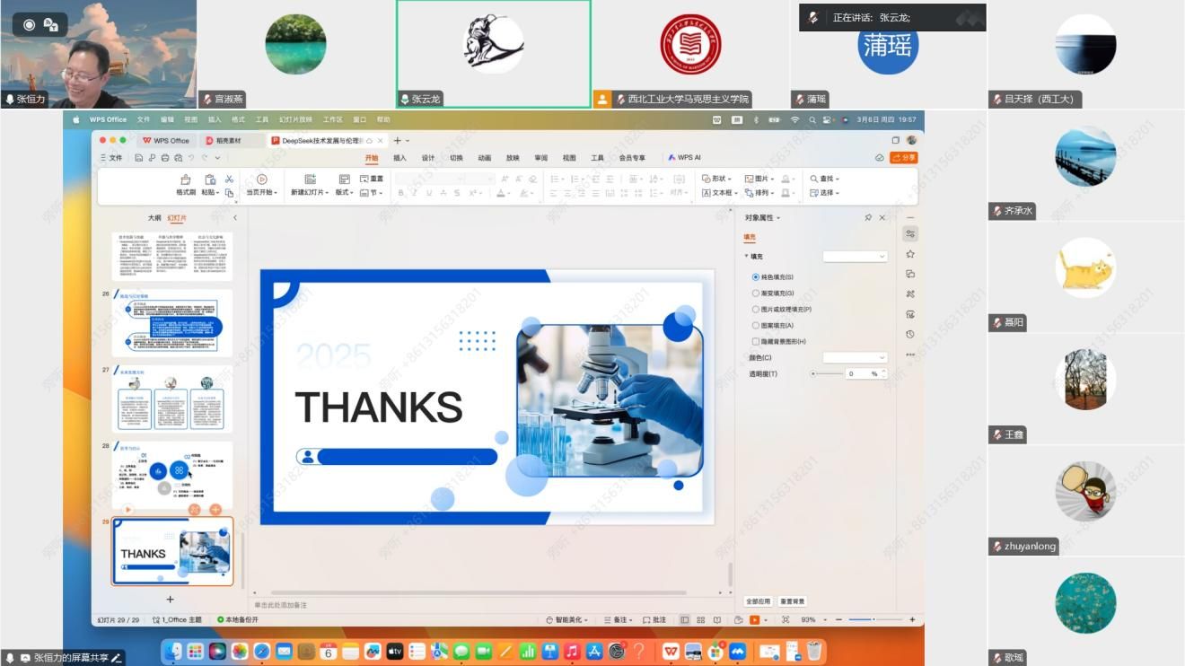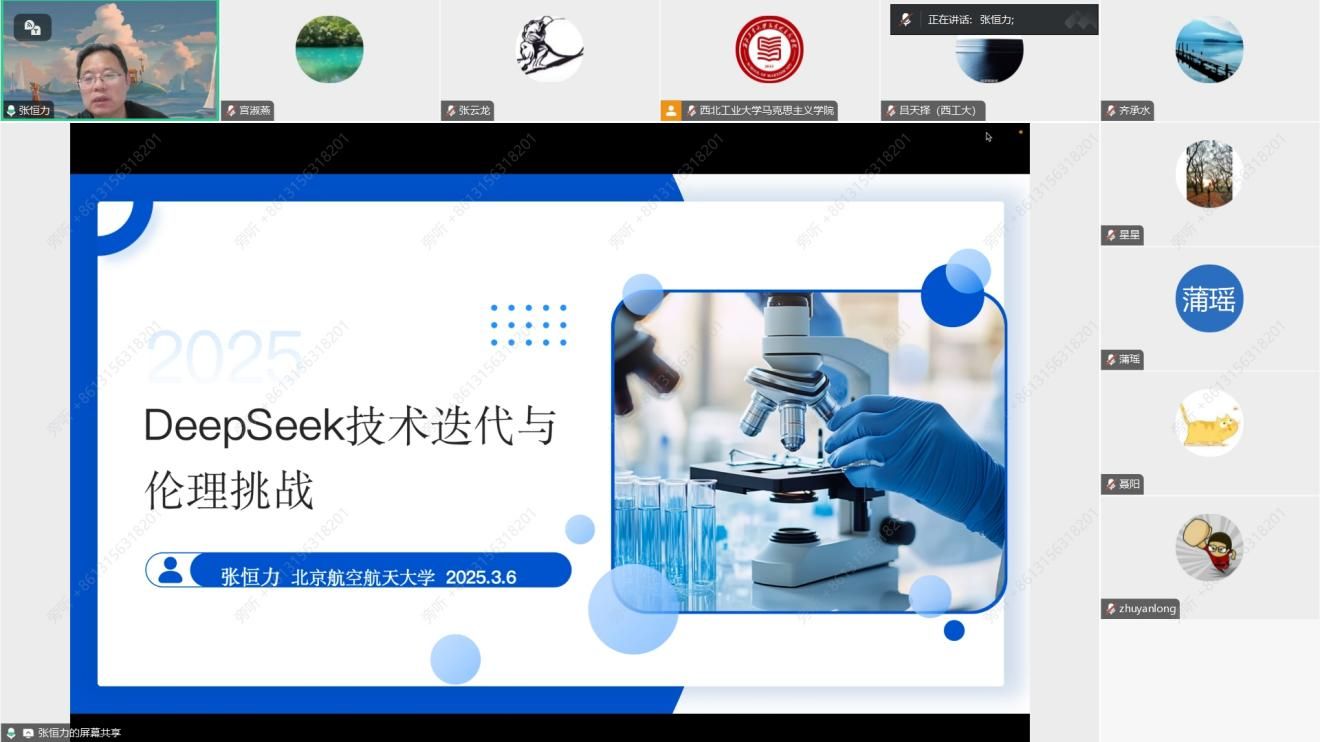 马克思主义学院《工程伦理学》课程组于3月6日晚上以线上会议的方式成功召开新学期集体备课会。本次会议由课程负责人宫淑燕副教授主持,特邀北京航空航天大学张恒力教授为主讲嘉宾,为课程组教师带来了一场题为《Deep Seek技术迭代与伦理挑战》的精彩报告。全体课程组成员相聚云端,共同探讨当下前沿技术对工程伦理教育的深远影响,为新学期的教学工作奠定坚实基础。