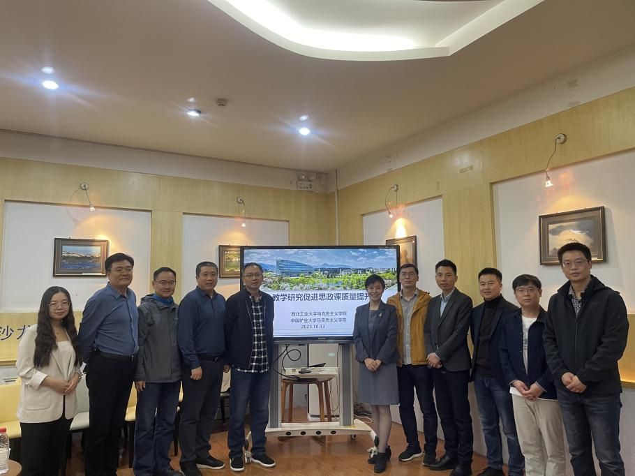 为进一步加强兄弟院校之间的交流合作,切实提升思政课教学水平,增强马克思主义理论学术研究能力,10月13日上午,我校马克思主义学院邀请中国矿业大学马克思主义学院院领导参加在友谊校区健翔楼红叶苑举办第十六期“讲道理——以研促教Seminar”活动。本期主题为:教学研究促进思政课质量提升。中国矿业大学马克思主义学院书记阎国华教授、副院长曹洪军教授以及期刊中心副主任李金齐教授应邀参加研讨会,马克思主义学院副院长张云龙教授与若干青年教师参加会议,会议由马克思主义学院副院长贺苗主持。