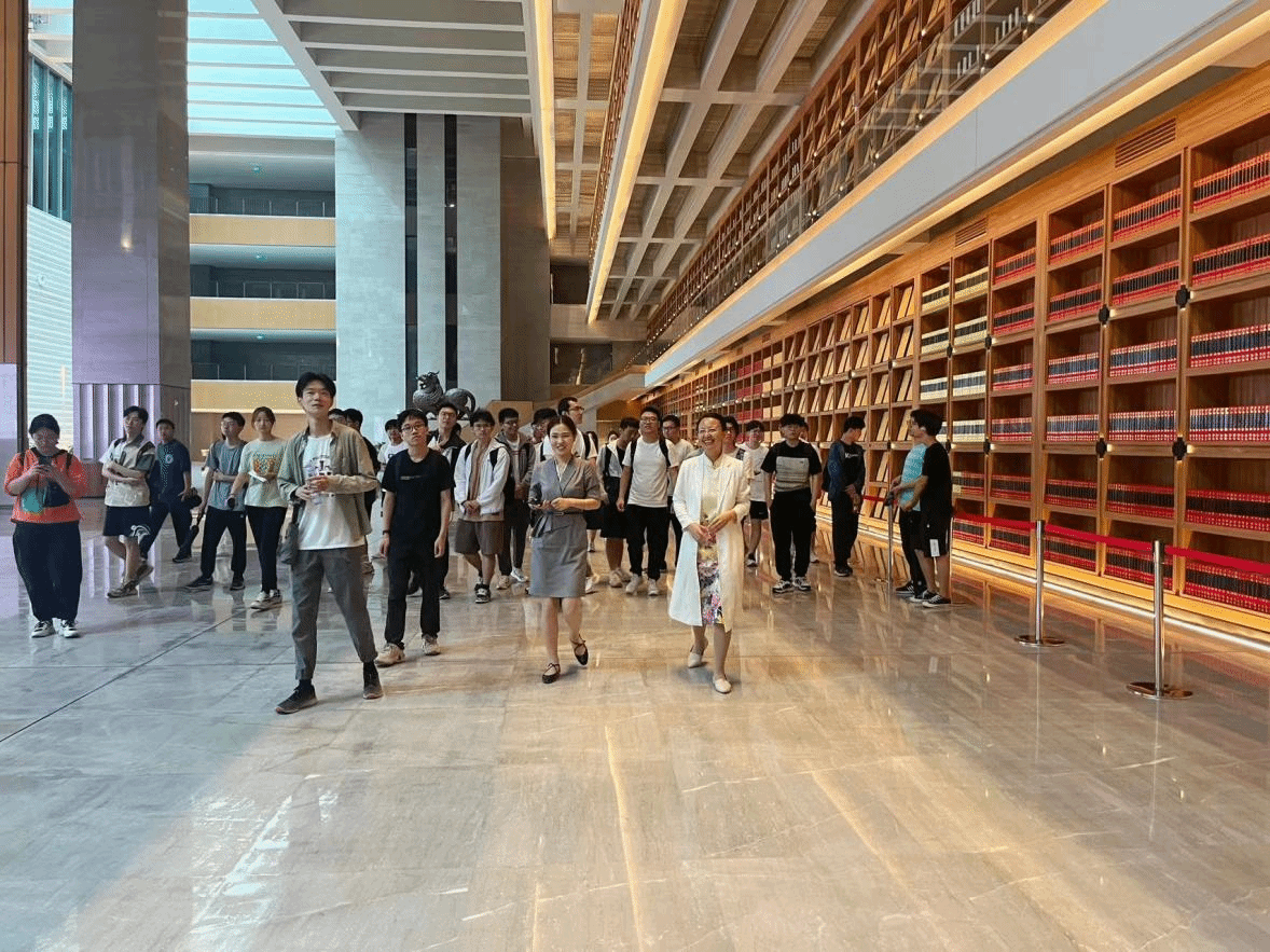 作为主阁核心的文济厅是西安国家版本馆最大的单体建筑空间,是一座宏大的保藏展示库。文济厅的书墙陈放了卷轴、线装书籍、古籍等上万册不同时期的不同版本,两侧还摆放着两尊寓意守护的天禄、麒麟雕塑。国家版本馆以守护典籍安全为目的,选择中国瑞兽天禄和麒麟有其深远文化含义。天禄阁是汉代的藏书阁,而’天禄’作为藏书阁名被沿用至今。在藏书阁中,学生们身临其境,接触到许多文化经典和知识,受益匪浅。