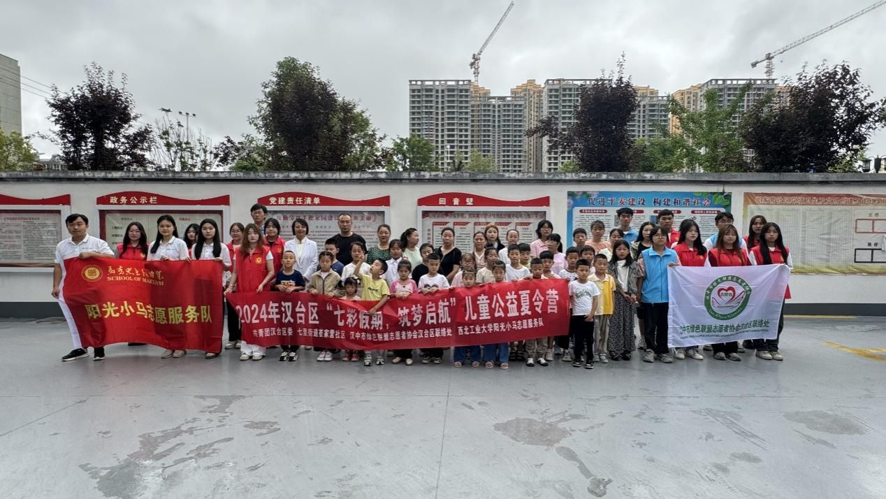 为进一步加强青少年儿童思想道德建设,深入推进大中小学思想政治教育一体化建设,总结“大思政课”前期调研经验,服务地方基础教育。7月15日,由西北工业大学马克思主义学院阳光小马志愿服务队参与承办的“七彩假期·筑梦启航”暑期儿童夏令营在汉中市汉台区开营。15日上午,夏令营在汉台区崔家营社区会议室举行了隆重的开营仪式,共青团汉台区委书记蹇劼、西北工业大学马克思主义学院副教授宁殿霞、崔家营社区党支部副书记刘明俊出席开营仪式,汉台区三十余名小朋友和家长代表参加。