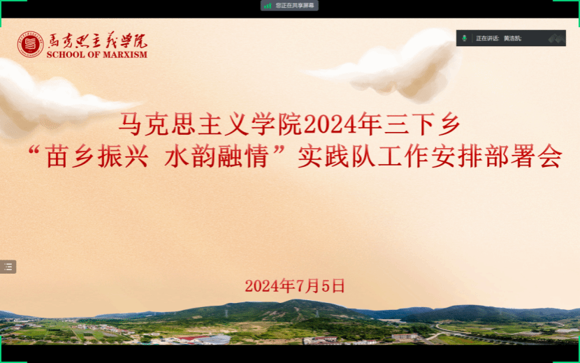 出发前,实践队线上召开了出征仪式和工作安排部署会。队长黄浩凯详细介绍了前期准备情况、调研计划、注意事项及安全预案等内容,并强调了此次实践活动对于深化理论学习、服务县域发展的重要意义。队员们积极发言,就本次实践活动的内容、方法、预期目标等进行了讨论,同时针对本次实践活动的安全风险点制定了详细的应对措施。